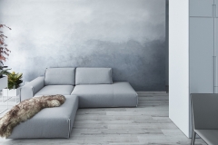 Generally the main idea of having a small space but to feel it big, is painting it white or light-grey. We made it more interesting by painting abstract clouds on the walls, so inviting the infinity to remove the close boundaries.