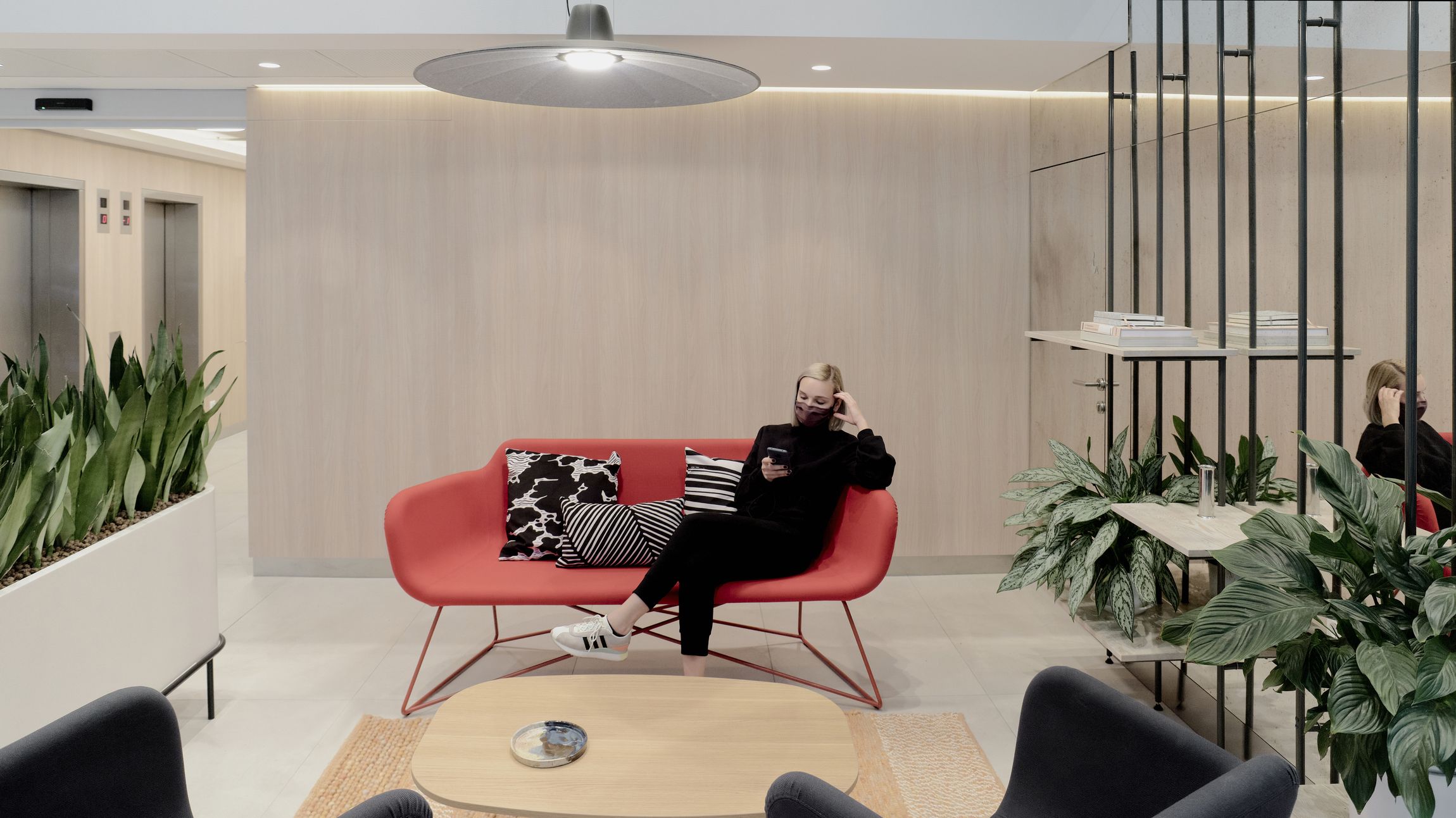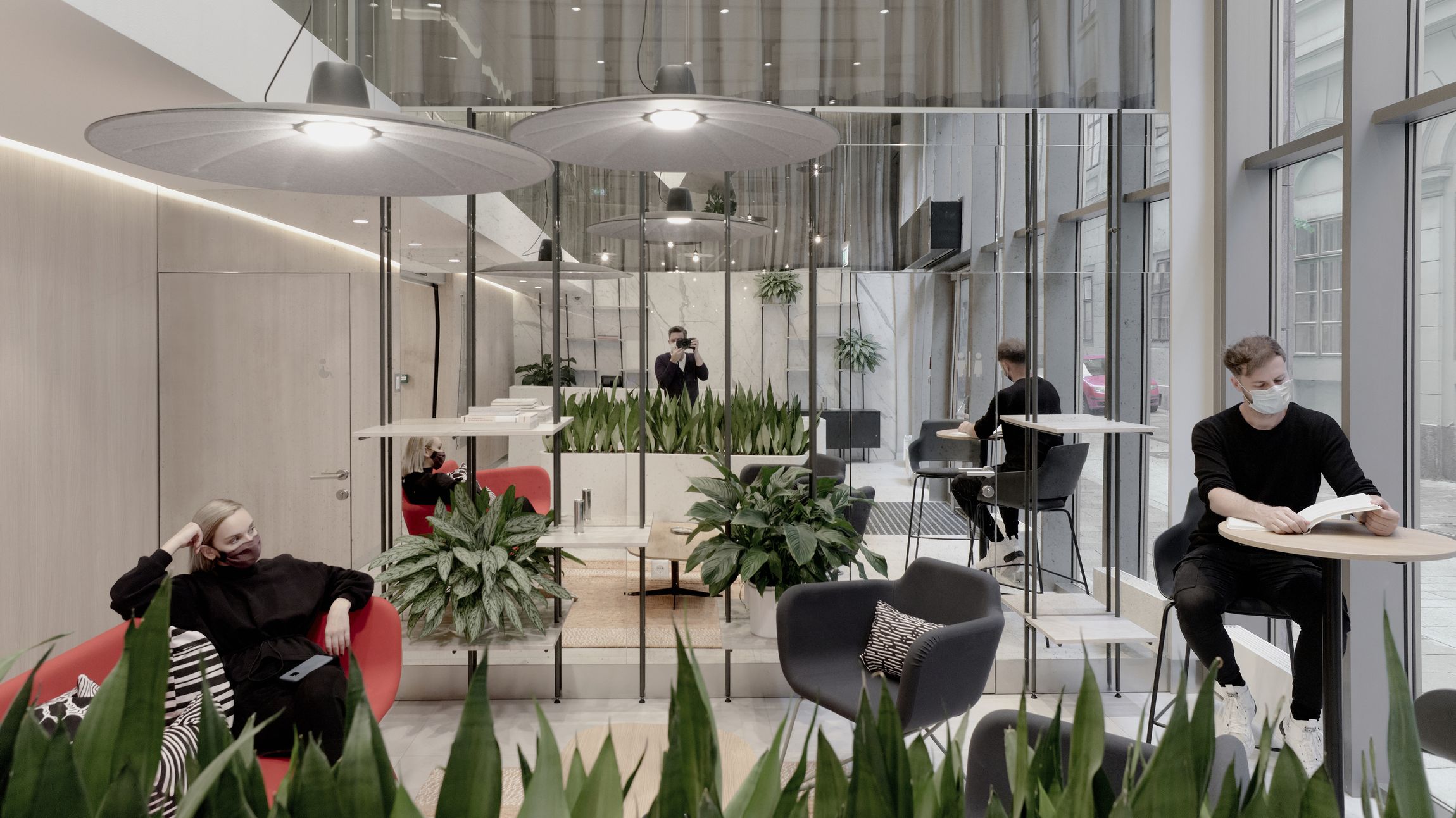 The 30 years old building has a clear layout and a great location, but due to the changes in how we work, and what we think of an office building now, the interior design needed a strong update. The Client had a strong vision and demand to achieve a 21st century look. The space of a lobby is not only for representation purposes and waiting area anymore, but also a transition space we use for informal meetings and short working times that need different space from the traditional open office areas. We were aiming for an atmosphere that is not a formal office lobby, but has a warmer mood, closer to bars or cozy offices.