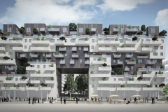 The part of 8th District behind Corvin Cinema has undergone a huge change during the last decade that you couldn’t recognize it. The investor called for a competition to find out the architectural solution for one of the last empty plots. Our proposal was a layout that frames the site and leaves the courtyard as spacious as possible. The varying mix of apartments appear as a motif on the facades, and the heavy volume tears up between the pedestrian allée and the green inner court. To balance a bit the busy city life in the centre, we provide terrace for everyone, and plant greenery on the terraces.