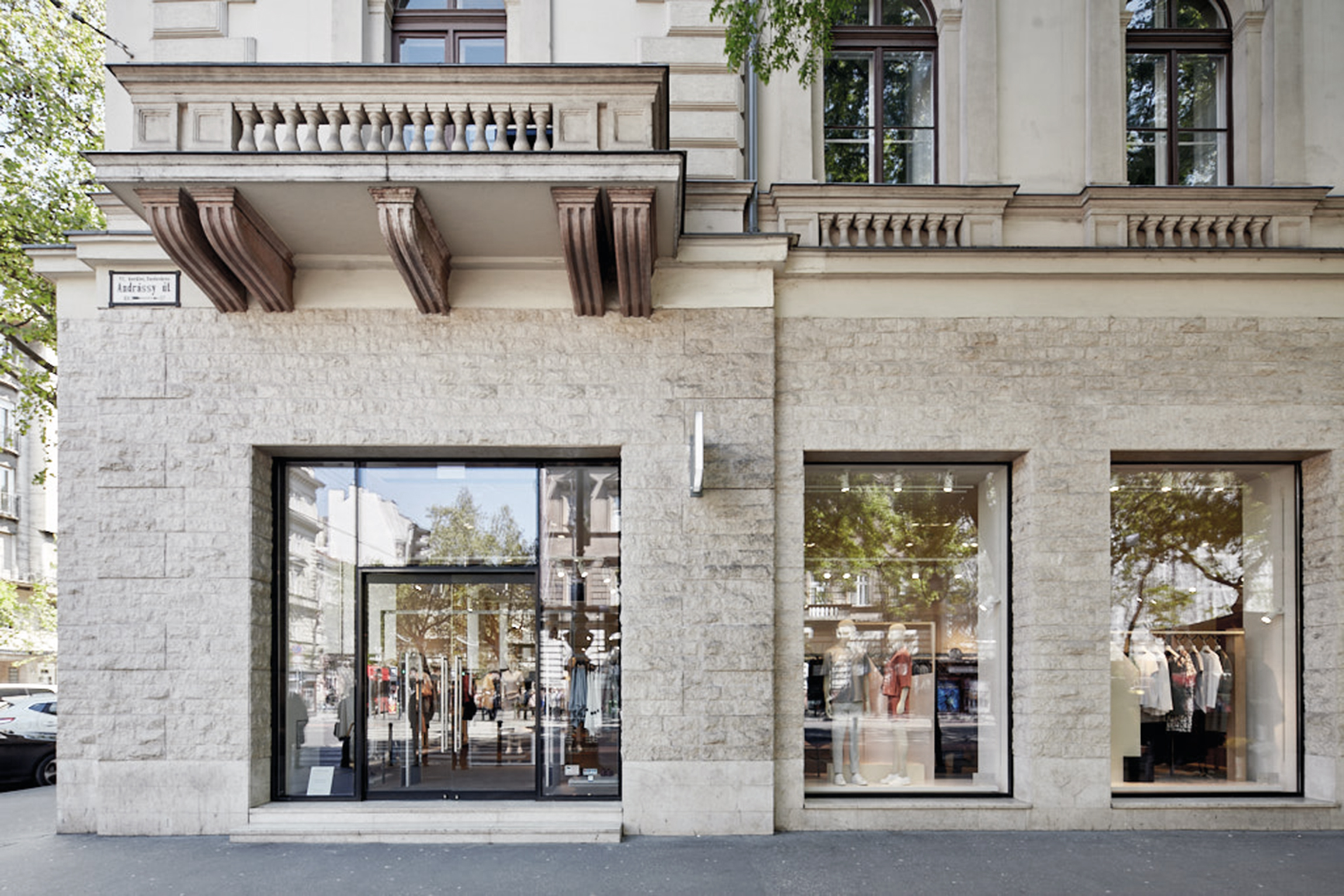 Andrássy avenue is the most prominent luxury shopping street of Budapest, going among the World Heritage site of the Pest side. Our retail space occupies the ground floor and basement of the building standing on the corner of Nagymező street, that is a National Monument from 1875 (design by Weber Antal). Unluckily the original shop front was demolished and refurbished several times.