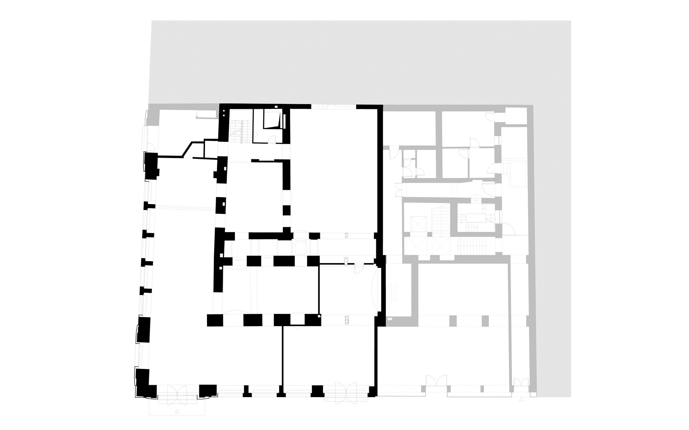 The new façade has a sharp, contemporary, monolithic effect, covered by rustic stones matching the age and the upper part of the building. All shop windows have been unified for an integrated look. To achieve more useful area, we sunk the basement floor, providing new foundation and waterproofing for the old building.