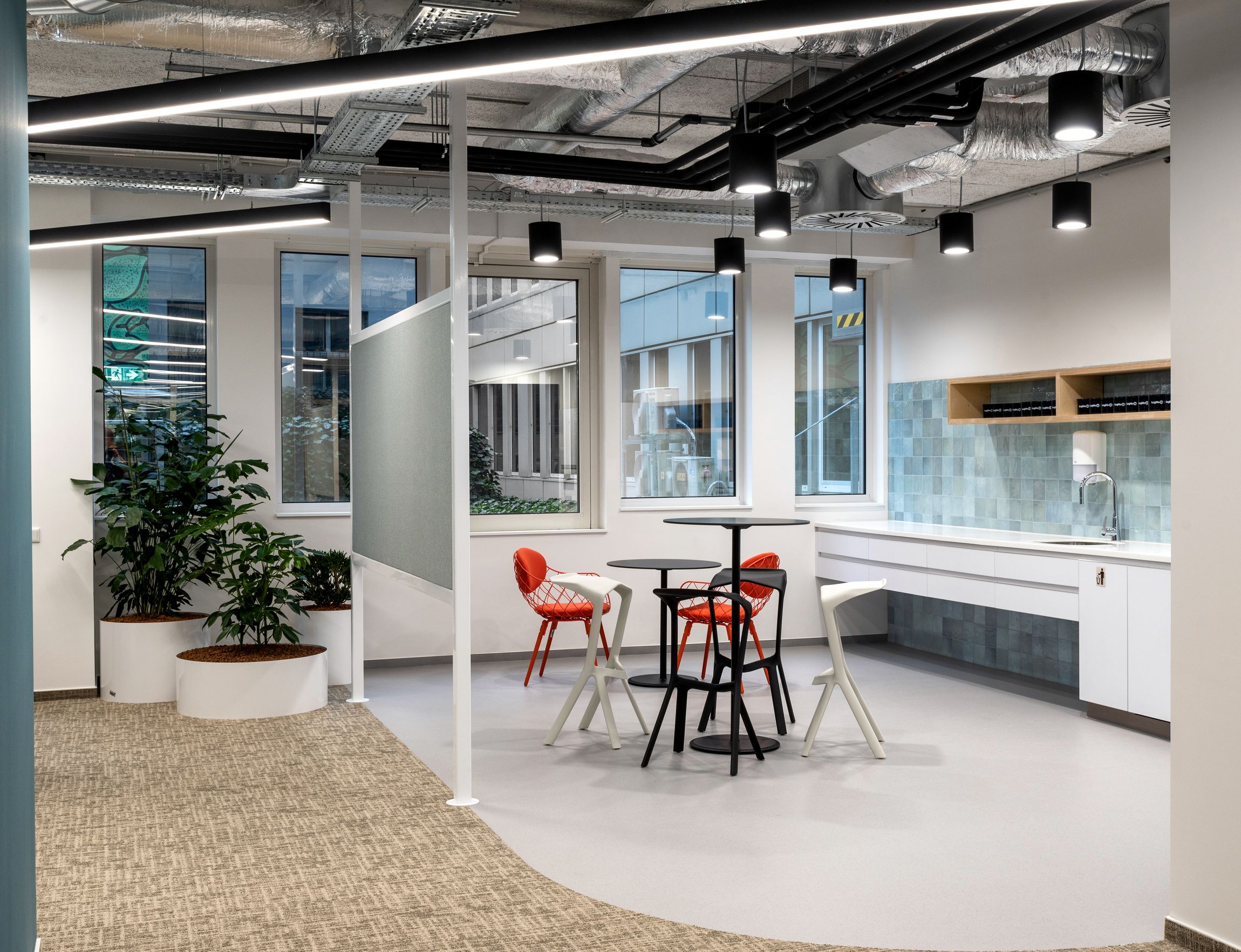 The portion of lounge and stand-up zones follow the demand of the working method of the company.