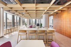 Standard office workplaces and lounge areas separated from each other with lots of greenery. On the 3,400 m2 surface, we created a large kitchen with a coffee bar and a multifunctional space suitable for presentation. The sunniest corner facing Váci út also got a recreational coffee bar but with a different atmosphere.