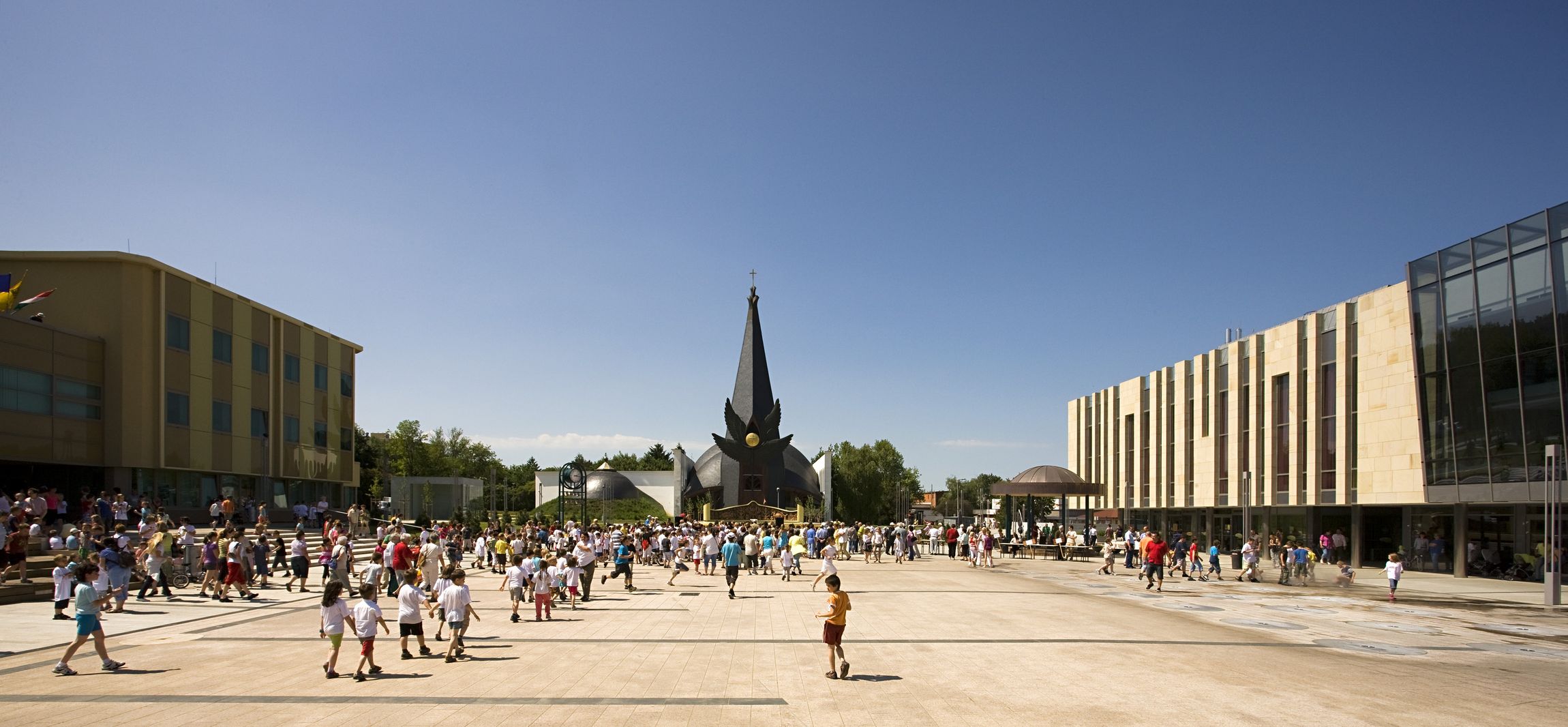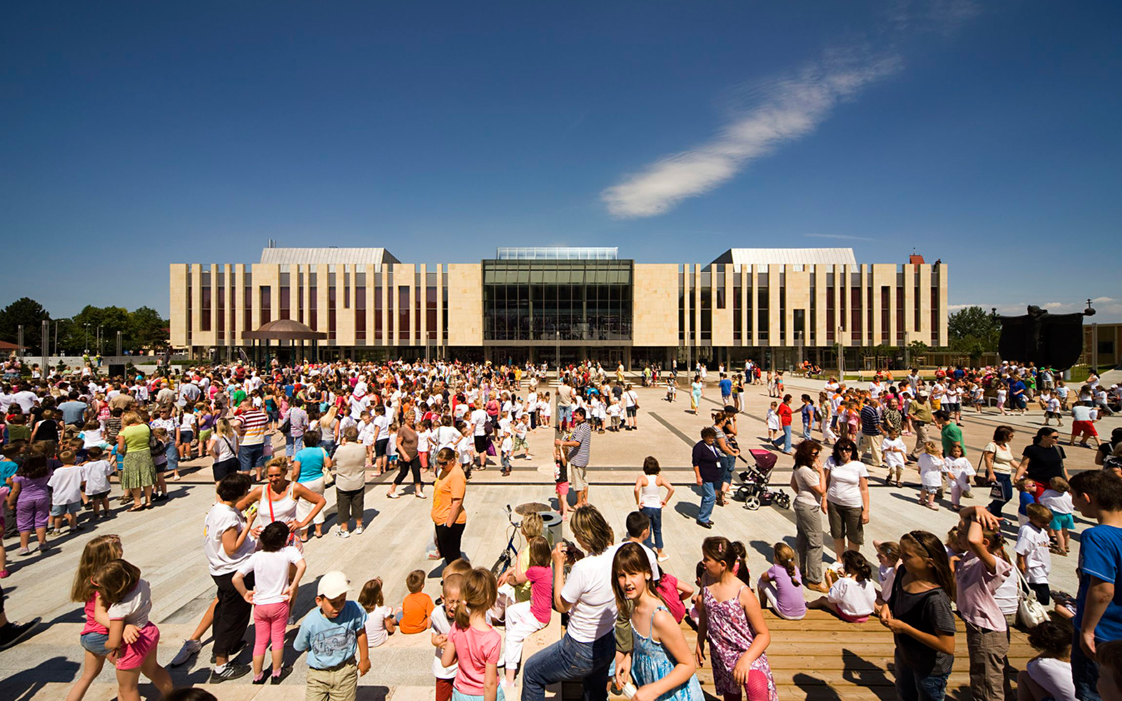The design of the new building and the landscape aimed to create a regular square with the church in the axis, an easily walkable surface, and a simple flat volume adapting to the scale of the surrounding buildings.