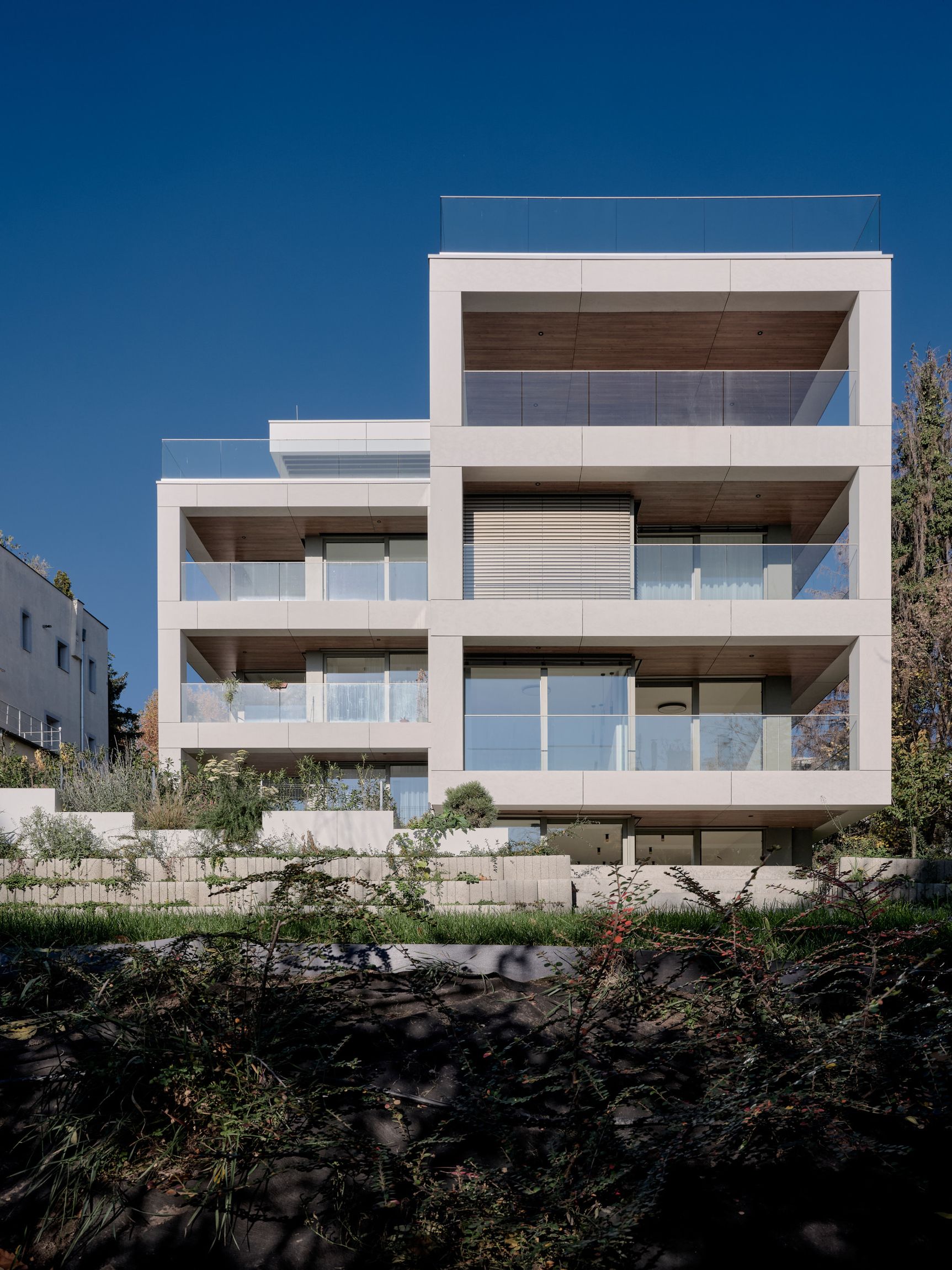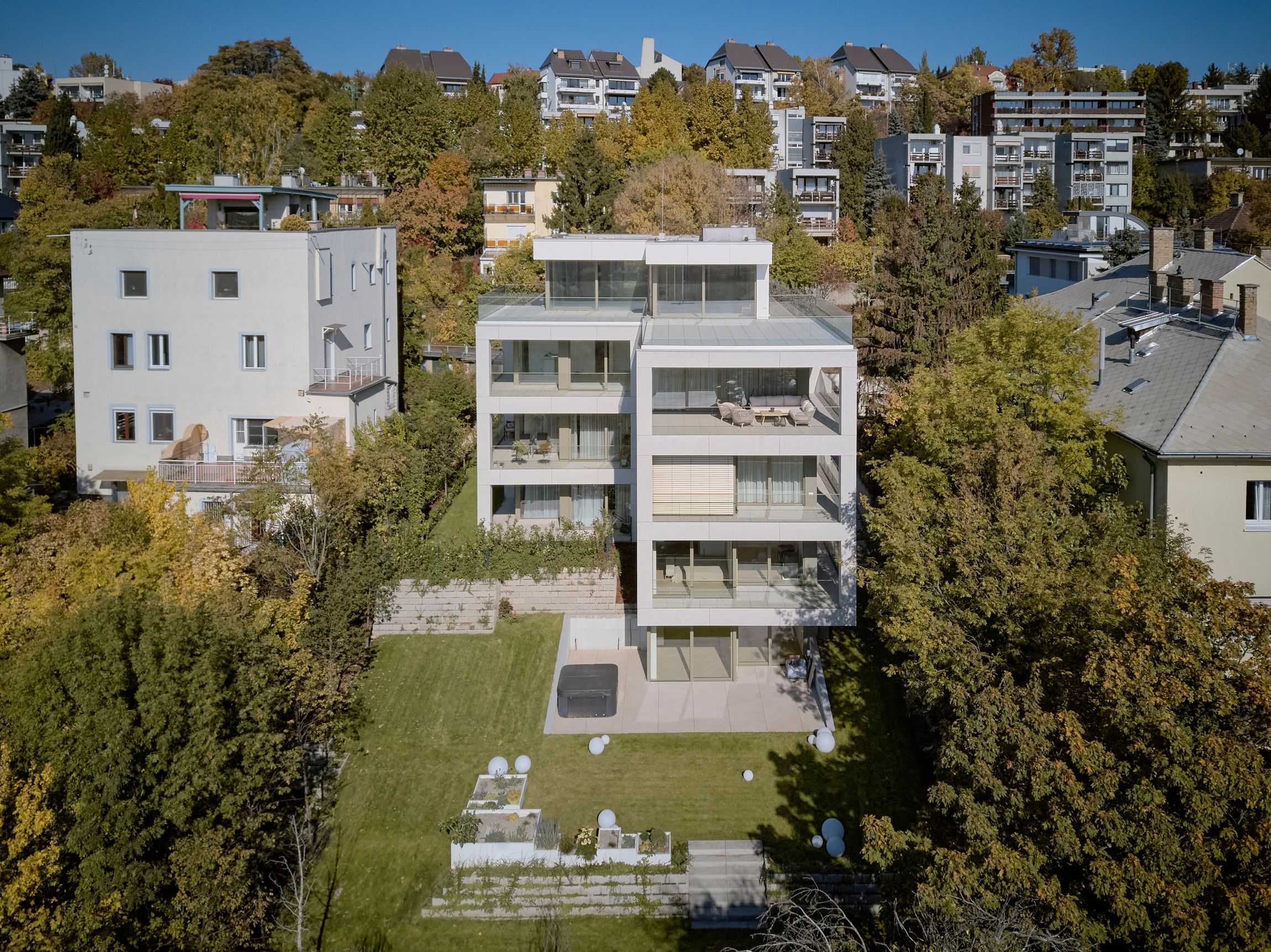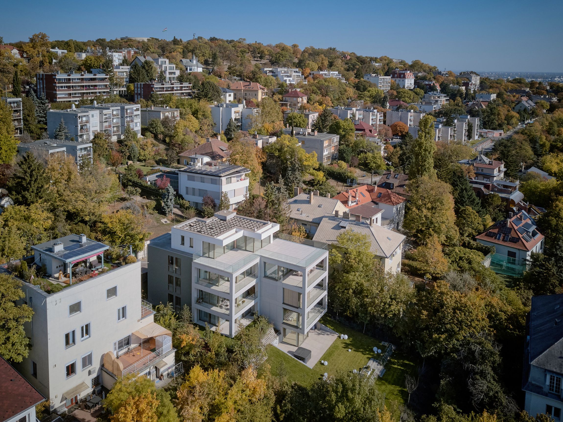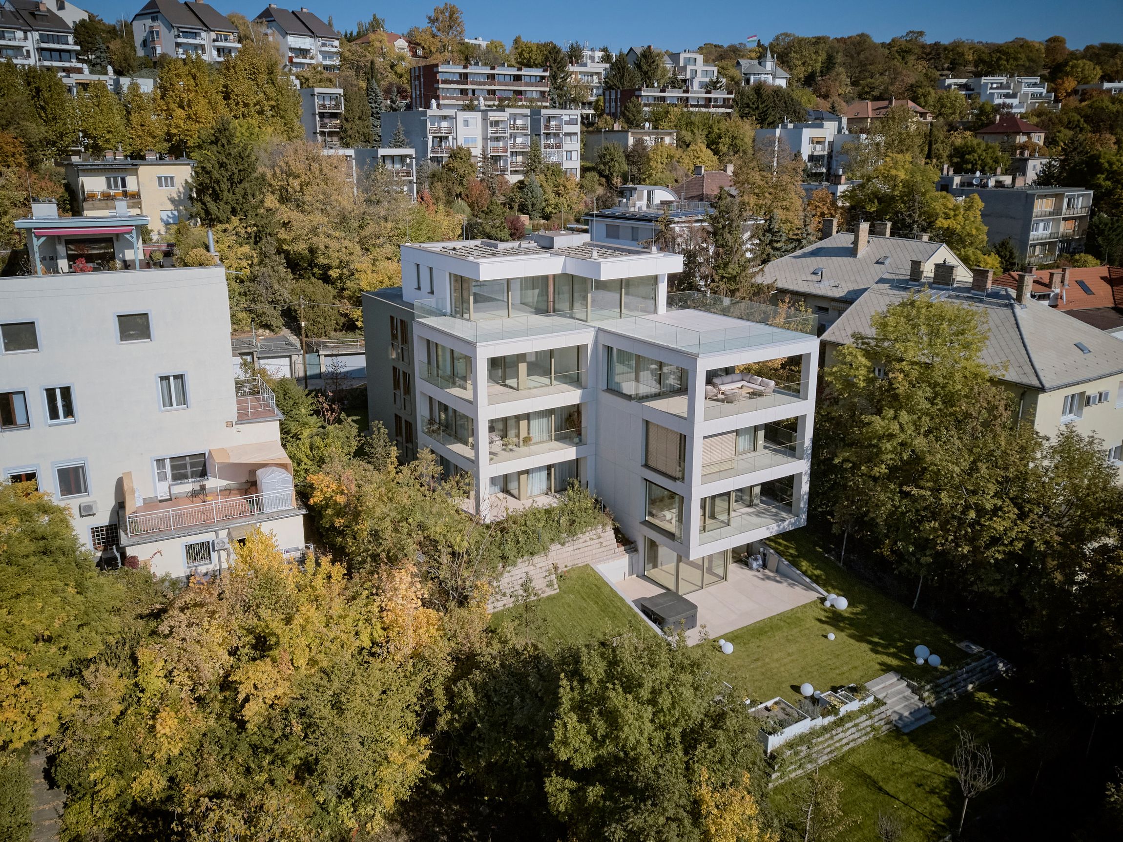 A zöldben önállóan álló, öt lakásos társasház a Gellért-hegy meredek déli lejtőjén található. Modern formákkal igazodik a szomszédos beépítések léptékéhez és stílusához. Homlokzata nemes anyaghasználattal felruházva, nagy ablakokkal és teraszokkal fordul a panoráma felé.