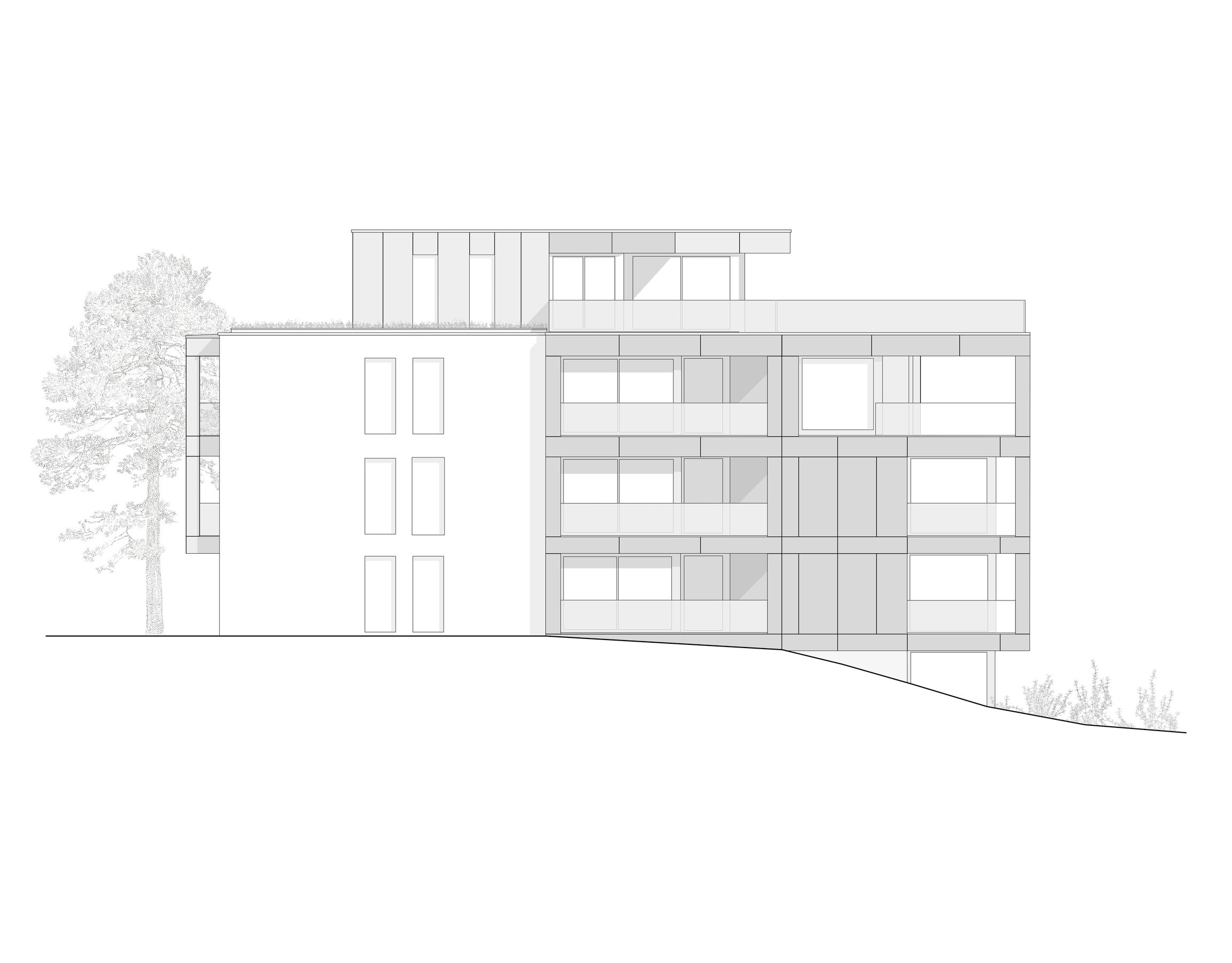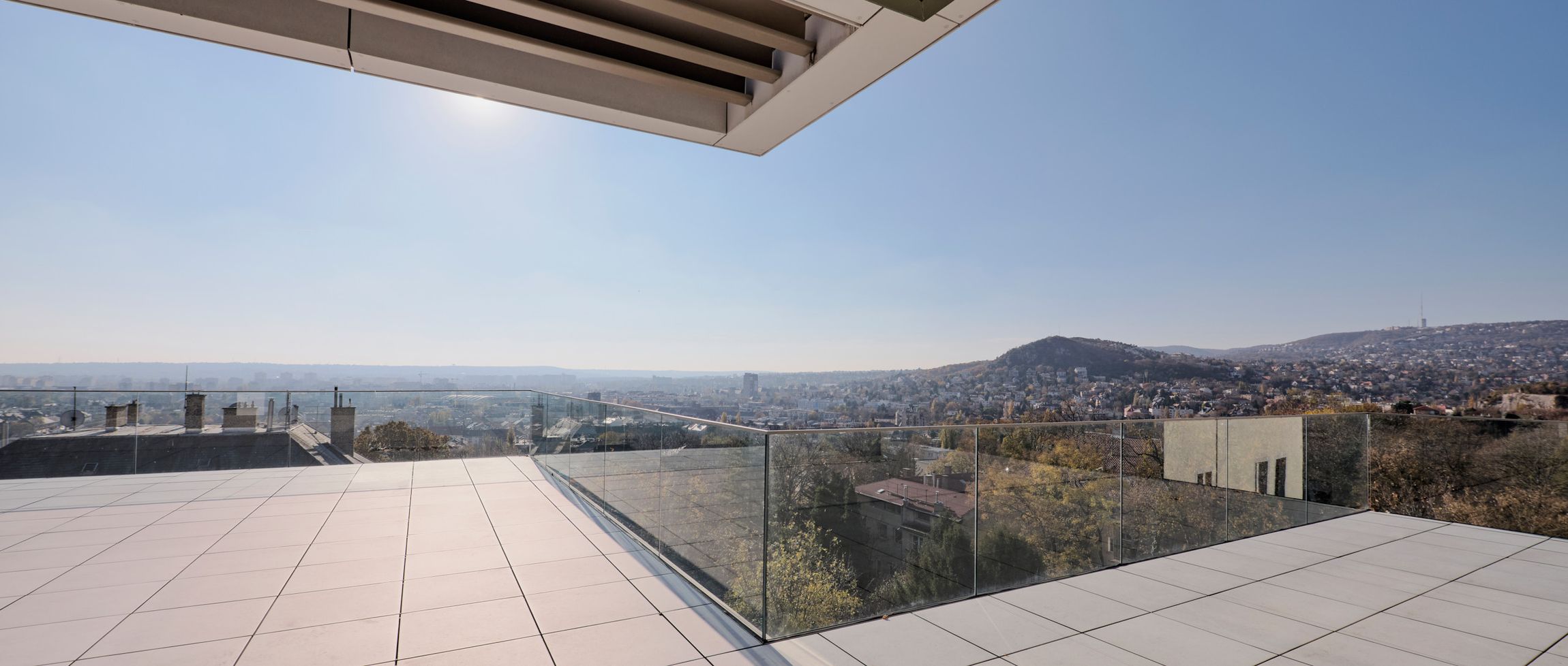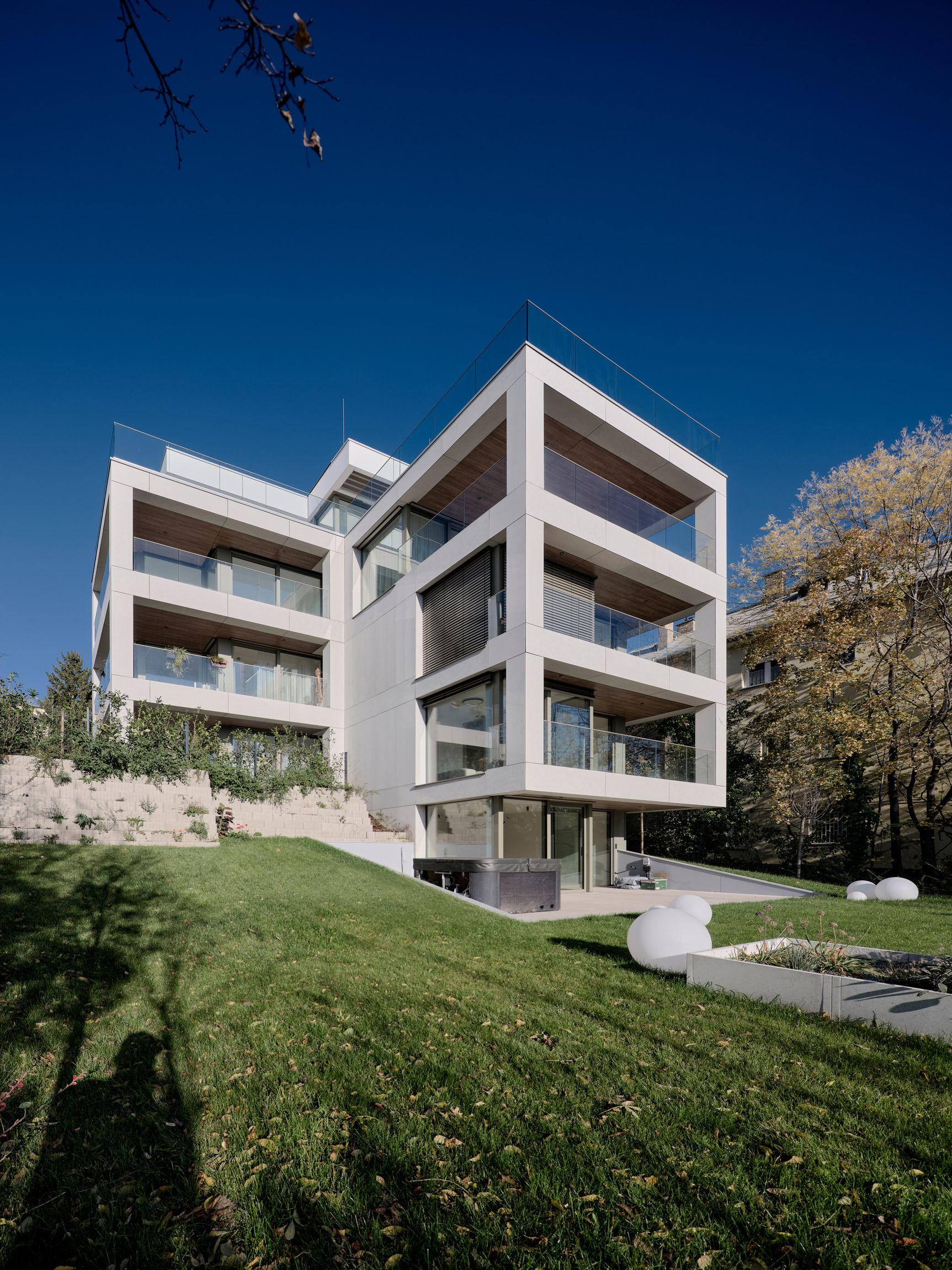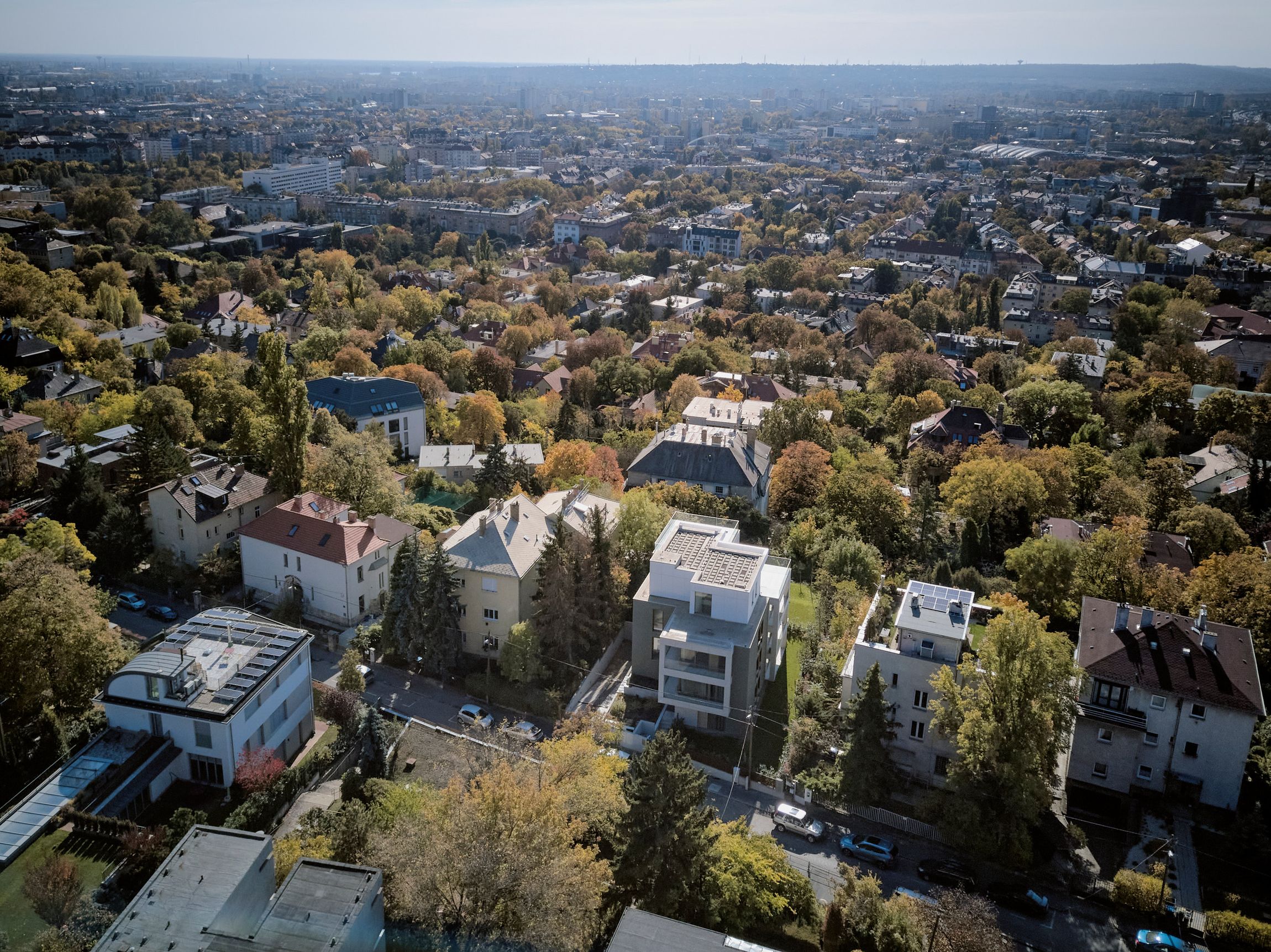 A zöldben önállóan álló, öt lakásos társasház a Gellért-hegy meredek déli lejtőjén található. Modern formákkal igazodik a szomszédos beépítések léptékéhez és stílusához. Homlokzata nemes anyaghasználattal felruházva, nagy ablakokkal és teraszokkal fordul a panoráma felé.