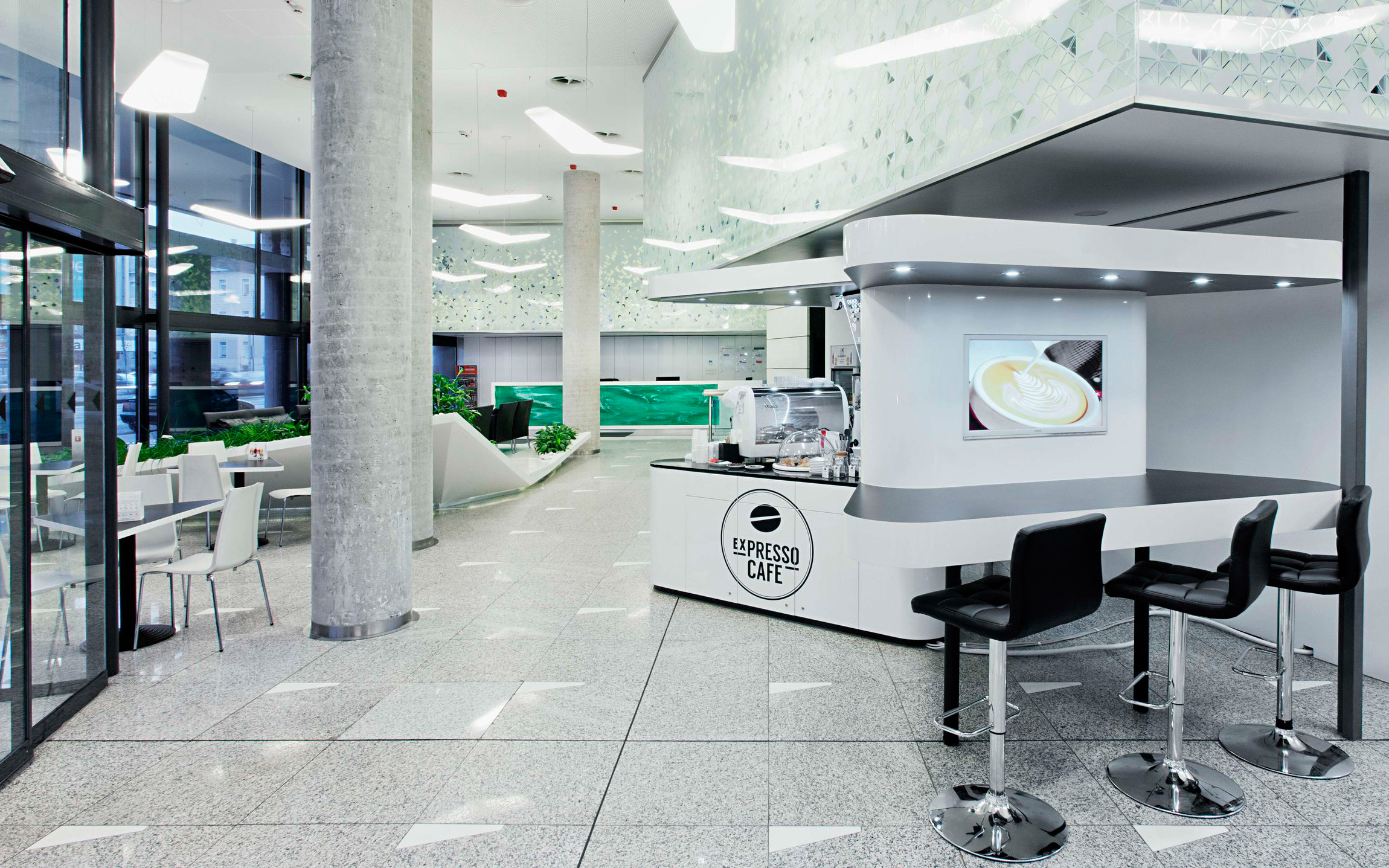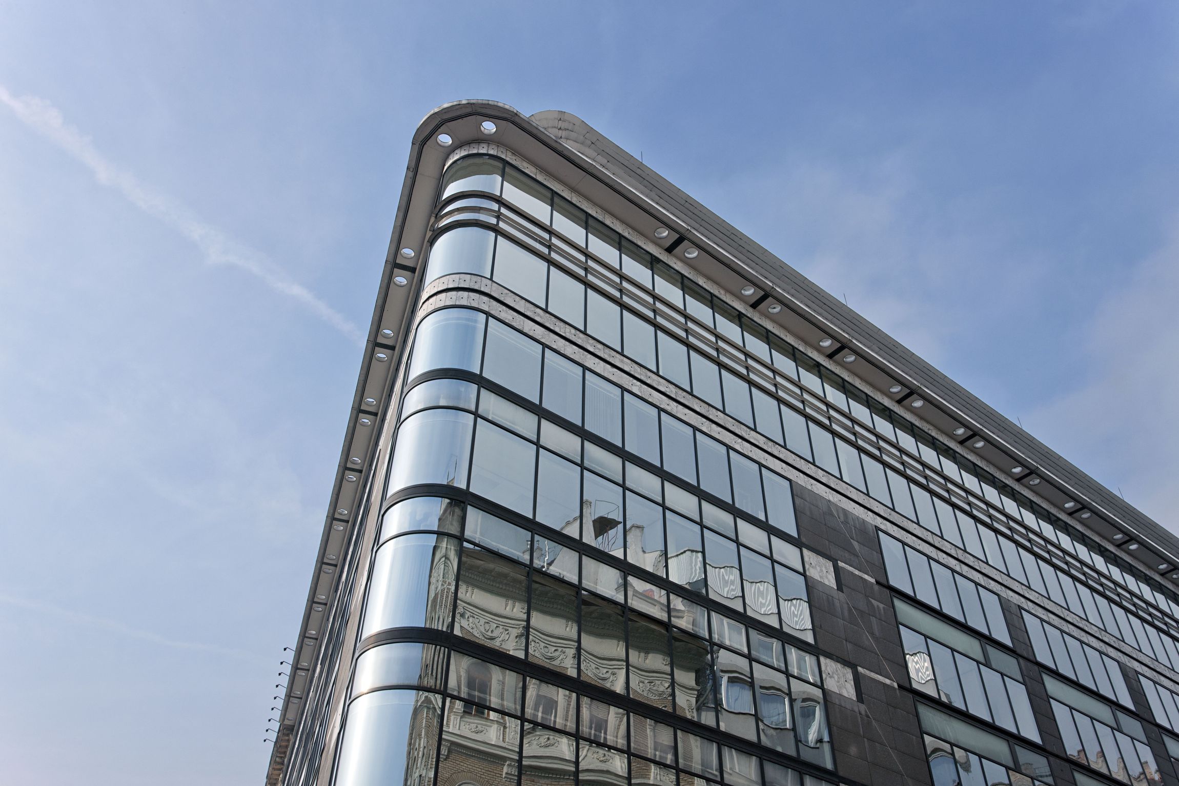 Mivel a meglévő épületből sok elemet meg kellett tartani (például a második emelettől felfelé az átriumra néző belső homlokzatokat), így az új részek szervesen illeszkednek hozzájuk: világos üvegfelületek, látszó vasbeton, és neutrális elemek kerültek csak beépítésre.