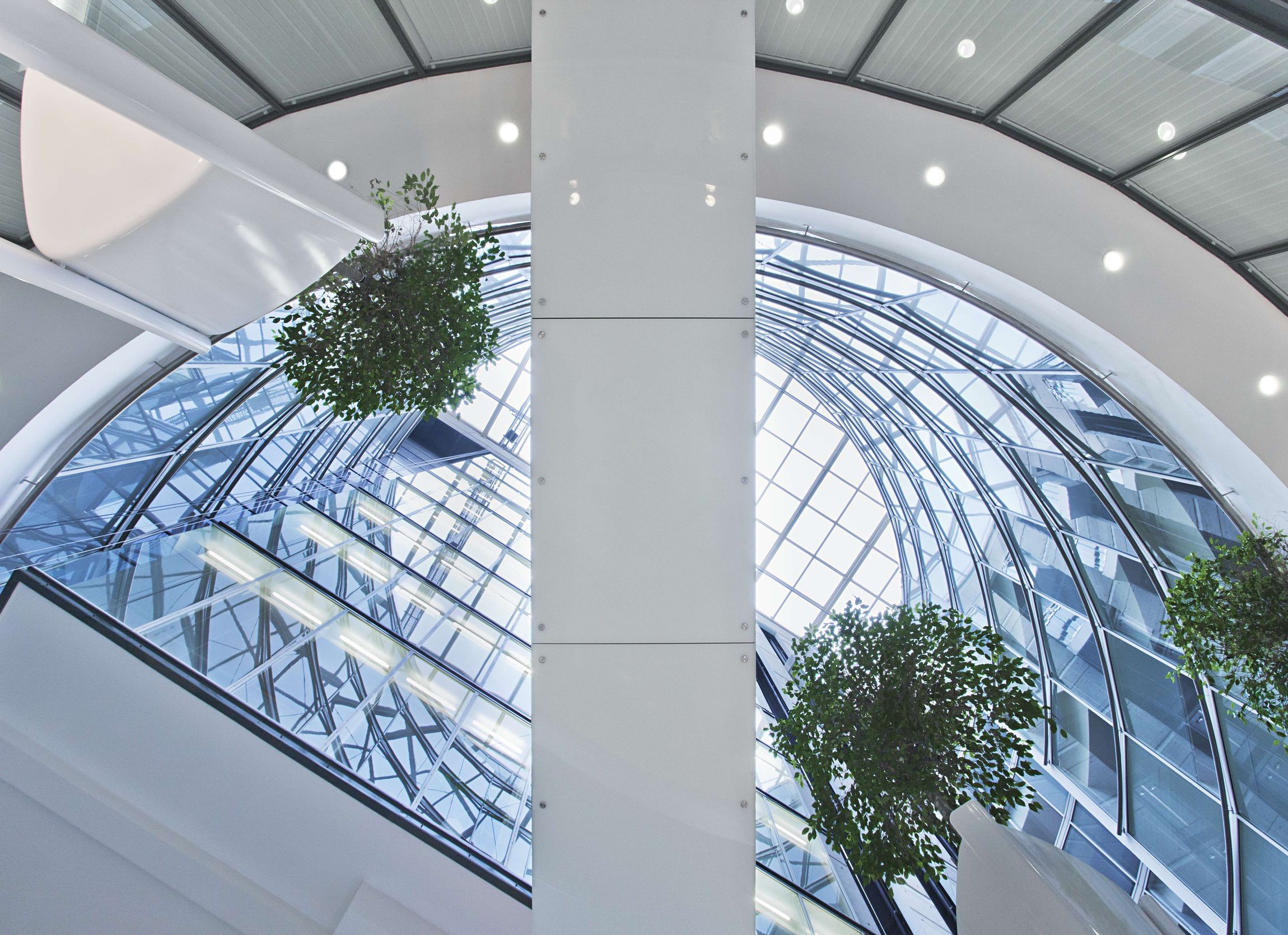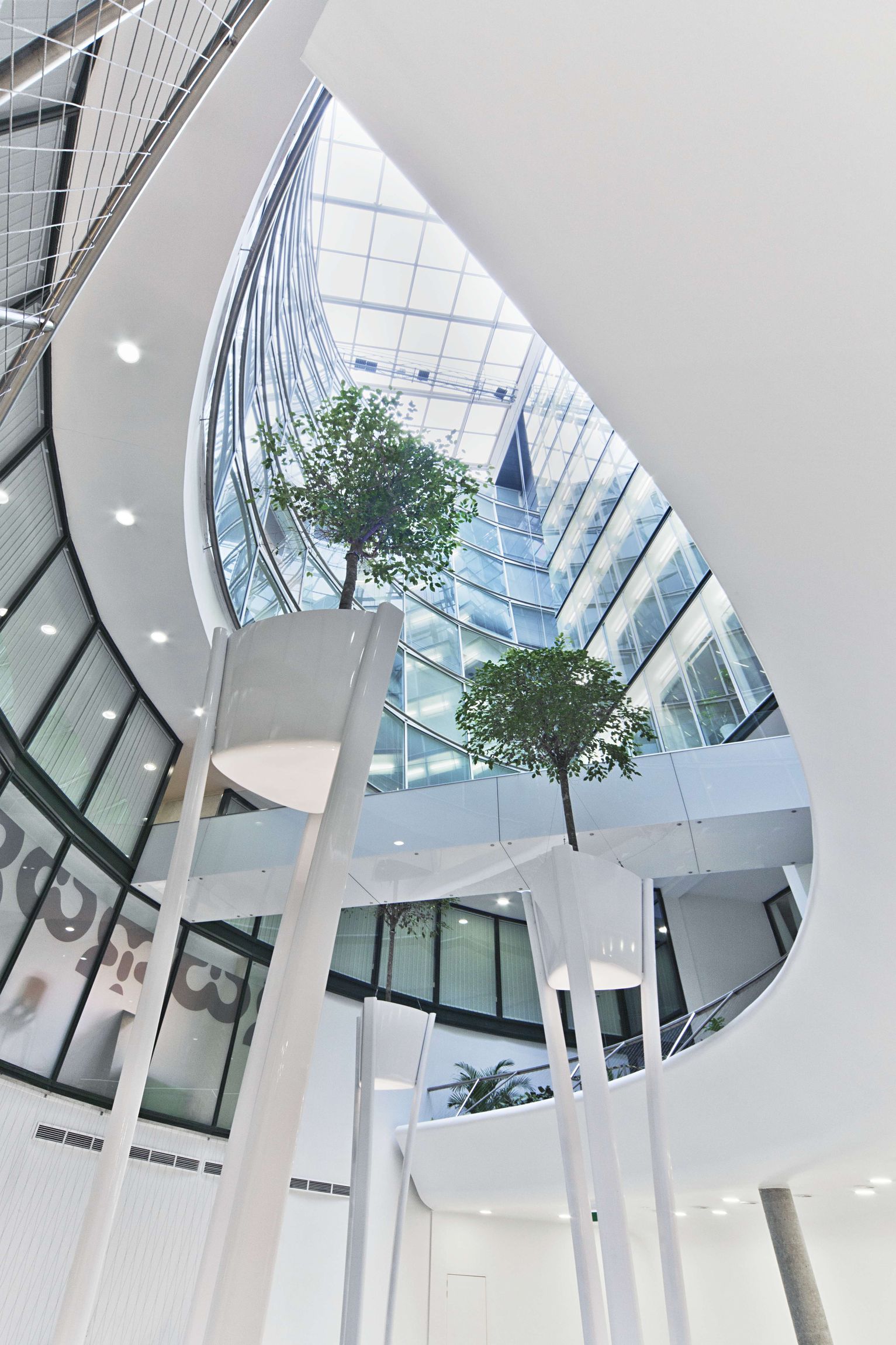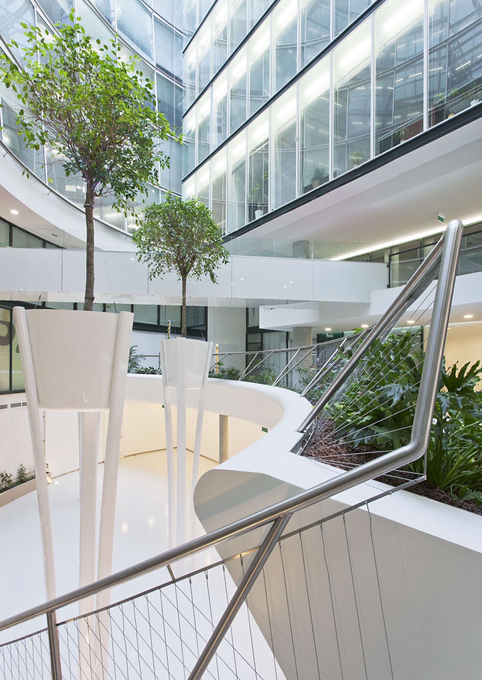 Az átriumba helyezett fák meg lettek emelve, hogy a lenti étteremből minél kevesebb helyet foglaljanak, illetve, hogy a lombkorona minél magasabbra kerülhessen, minél közelebb az irodák belsőre néző ablakaihoz.