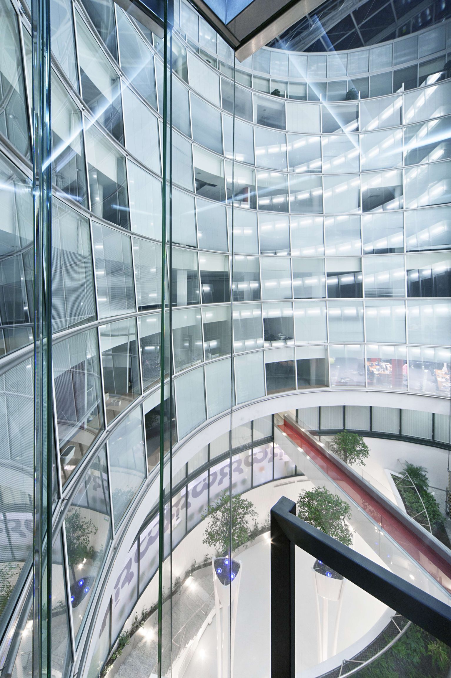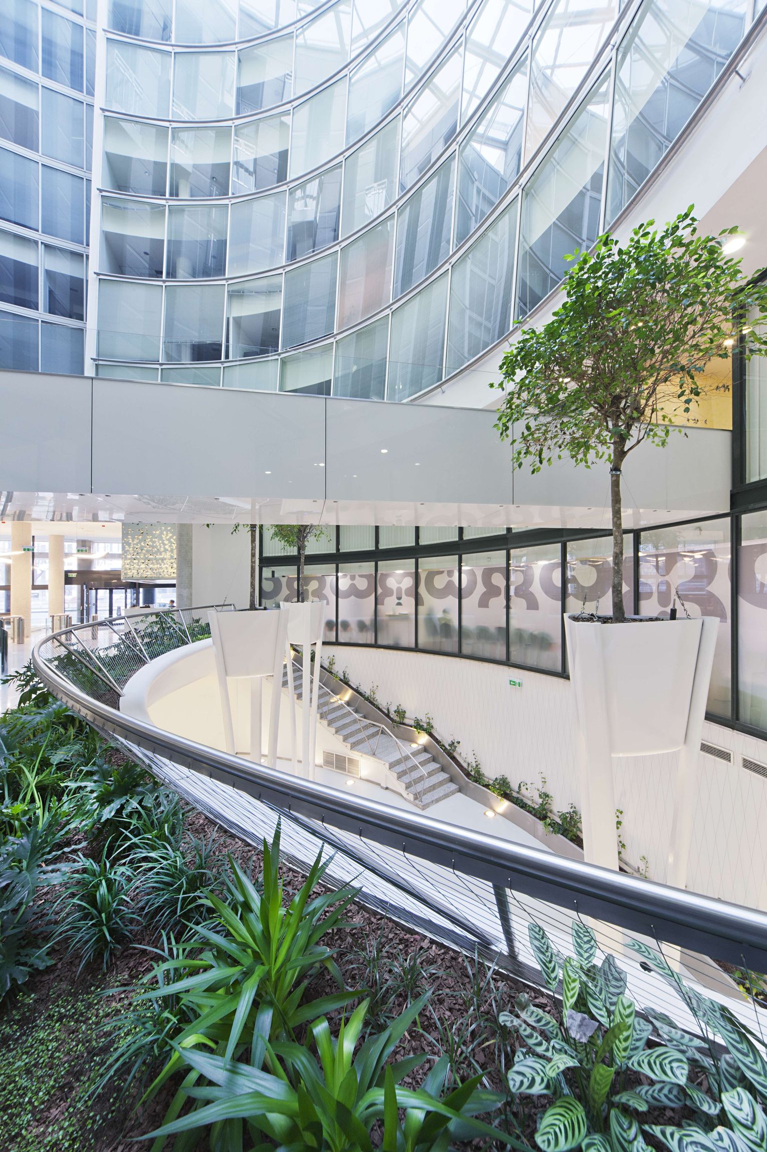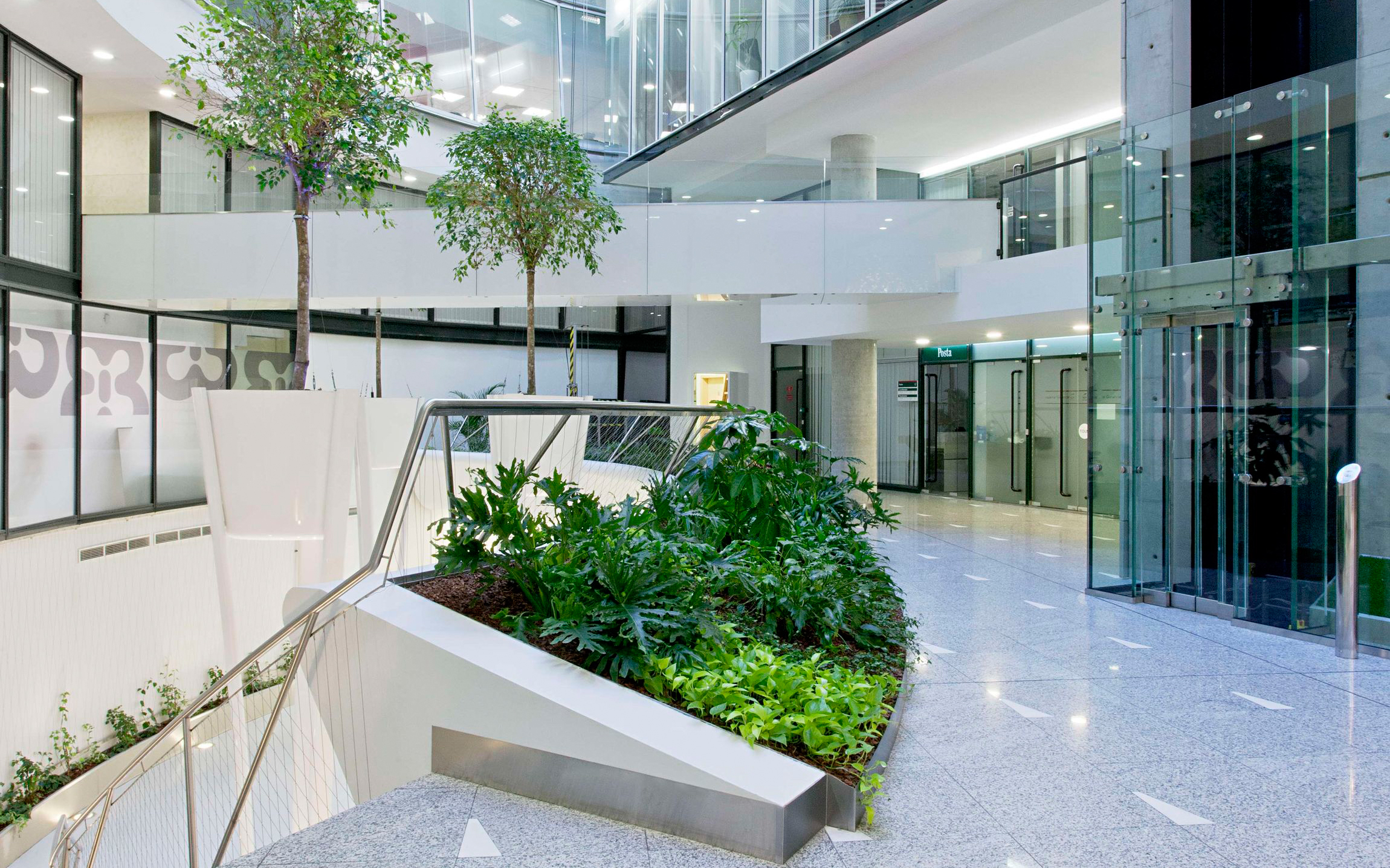 Az átriumba helyezett fák meg lettek emelve, hogy a lenti étteremből minél kevesebb helyet foglaljanak, illetve, hogy a lombkorona minél magasabbra kerülhessen, minél közelebb az irodák belsőre néző ablakaihoz.
