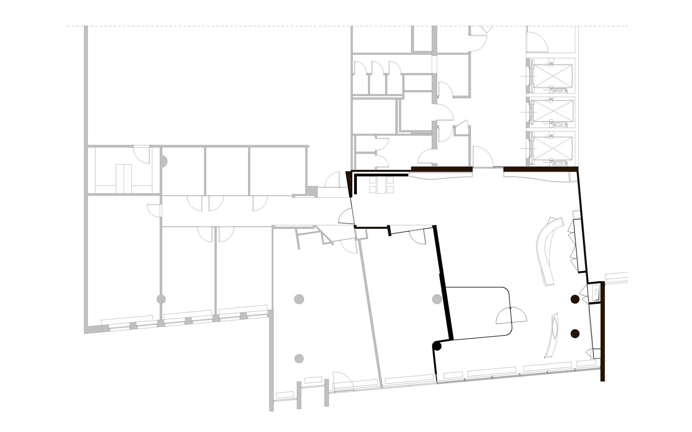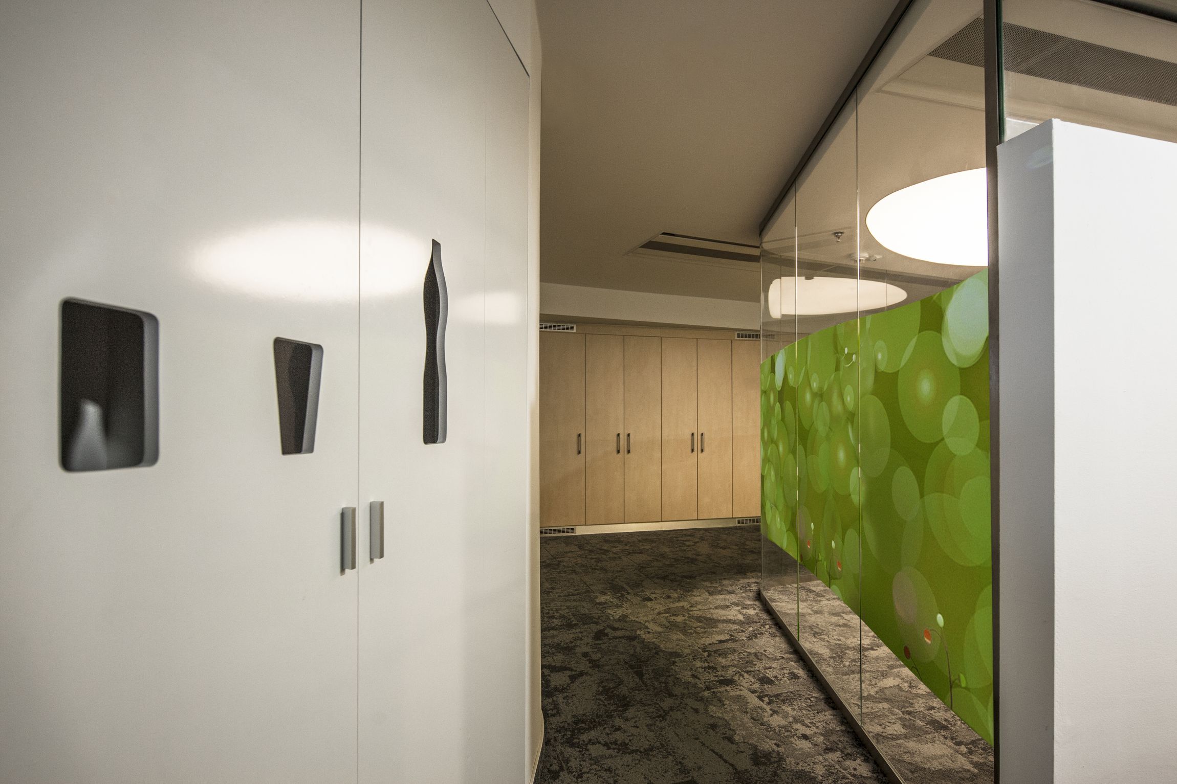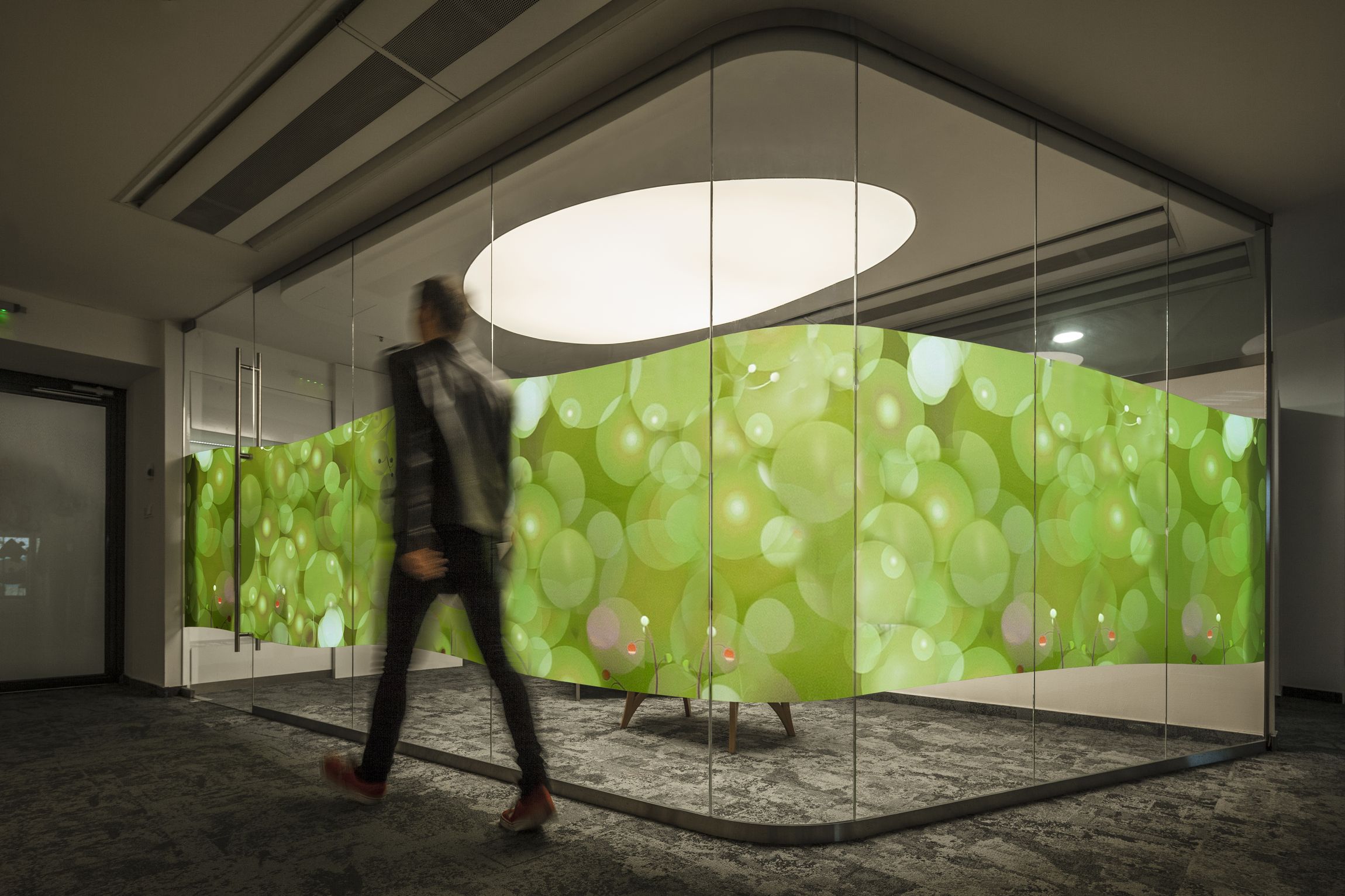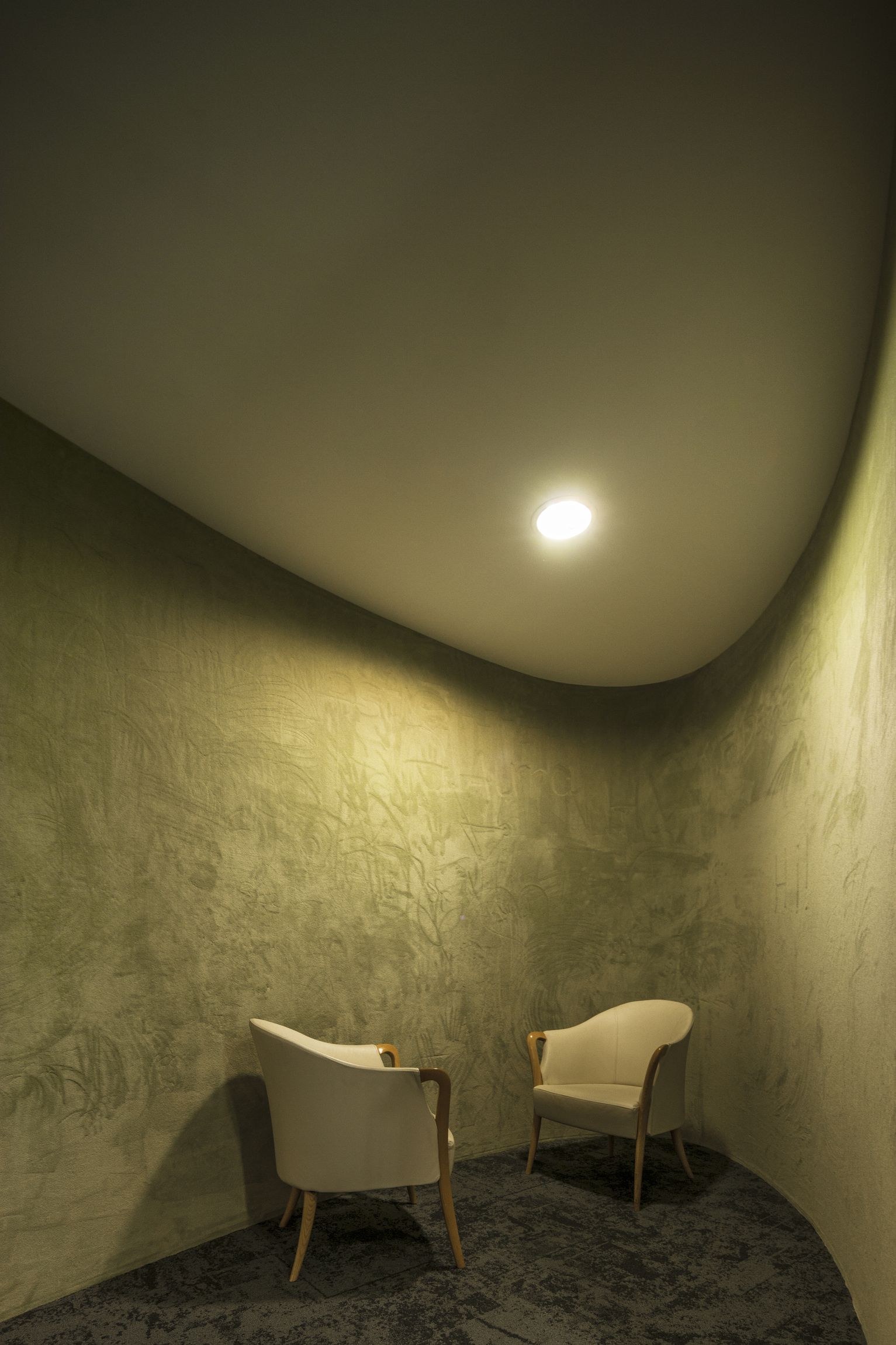 Természeti alapformákból kiindulva terveztük meg a Nestlé budapesti irodájának lobby helyiségét, és a kisebb meeting szobákat is magukba foglaló tereket.
