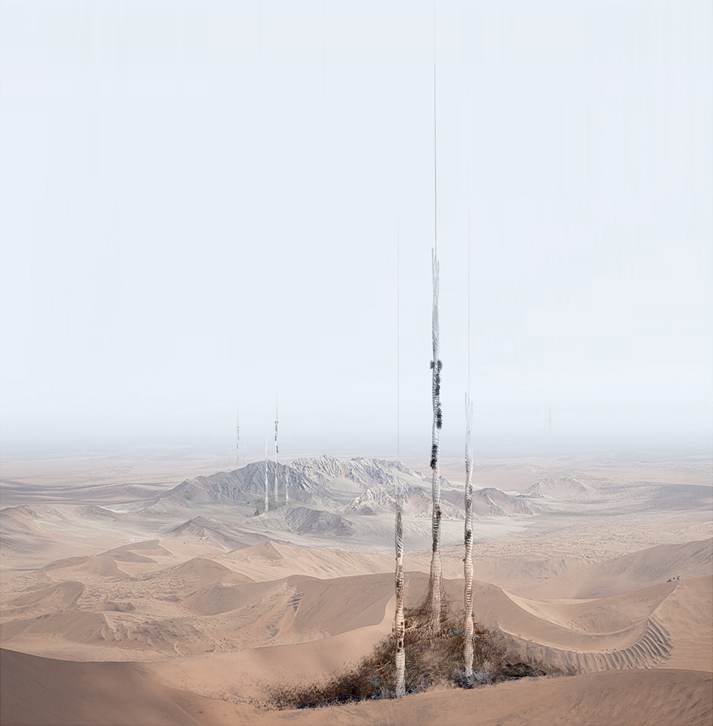 A közlemúlt fejlesztése egy olyan finom hálós szövet alkalmazása homlokzatokon, mely a magas légkörben szálló párát tudja ivóvízként összegyűjteni. A bolygón sok helyütt a felszínen nem áll rendelkezésre elegendő ivóvíz készlet, de a magas légköri áramlatokban ezt sokszor mégis megtaláljuk. Az 50 szintenként elhelyezett súlyok, melyeket a földrengésekre méreteztünk, egyfajta víztornyokként is tudnak így működni.