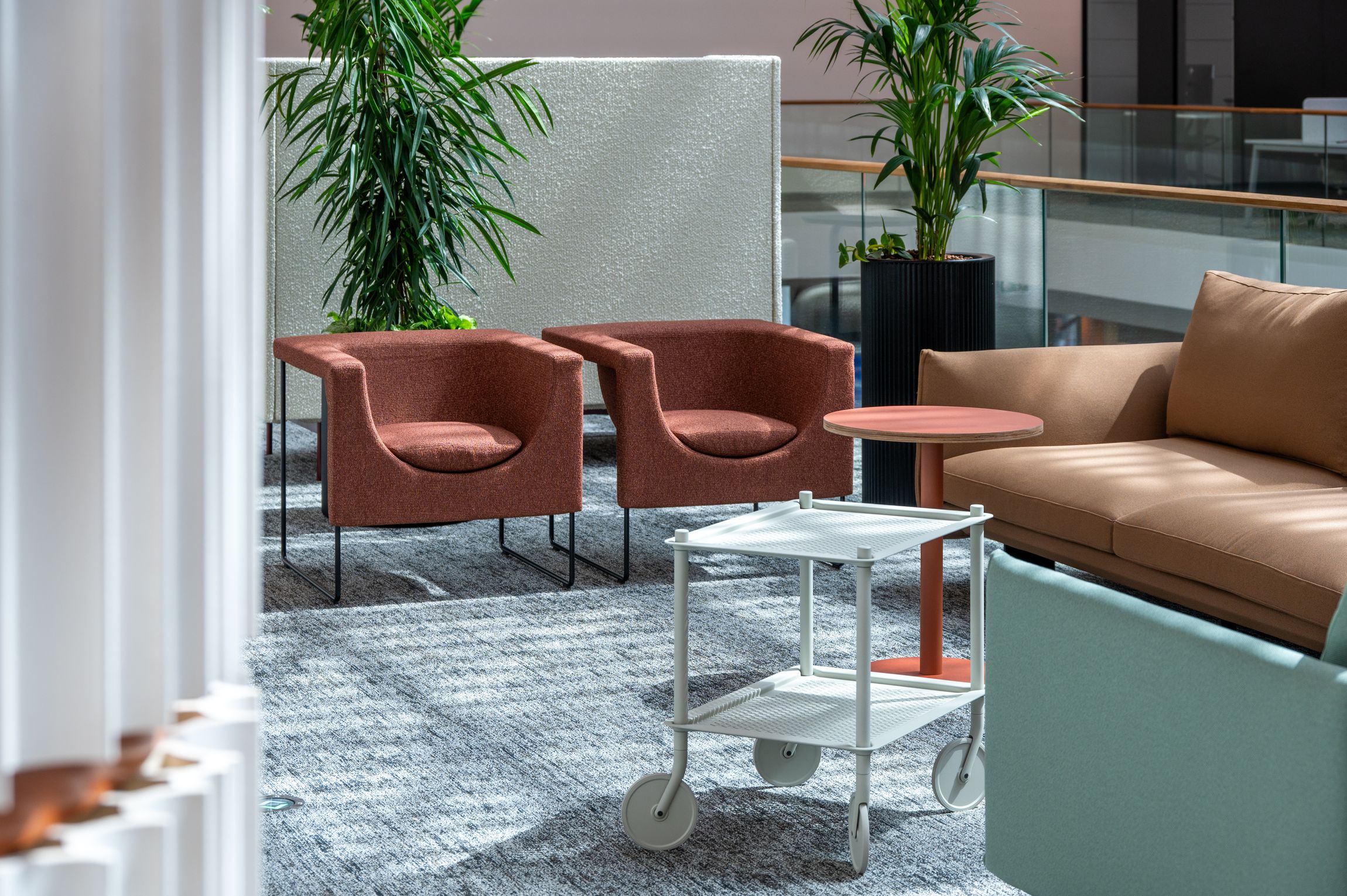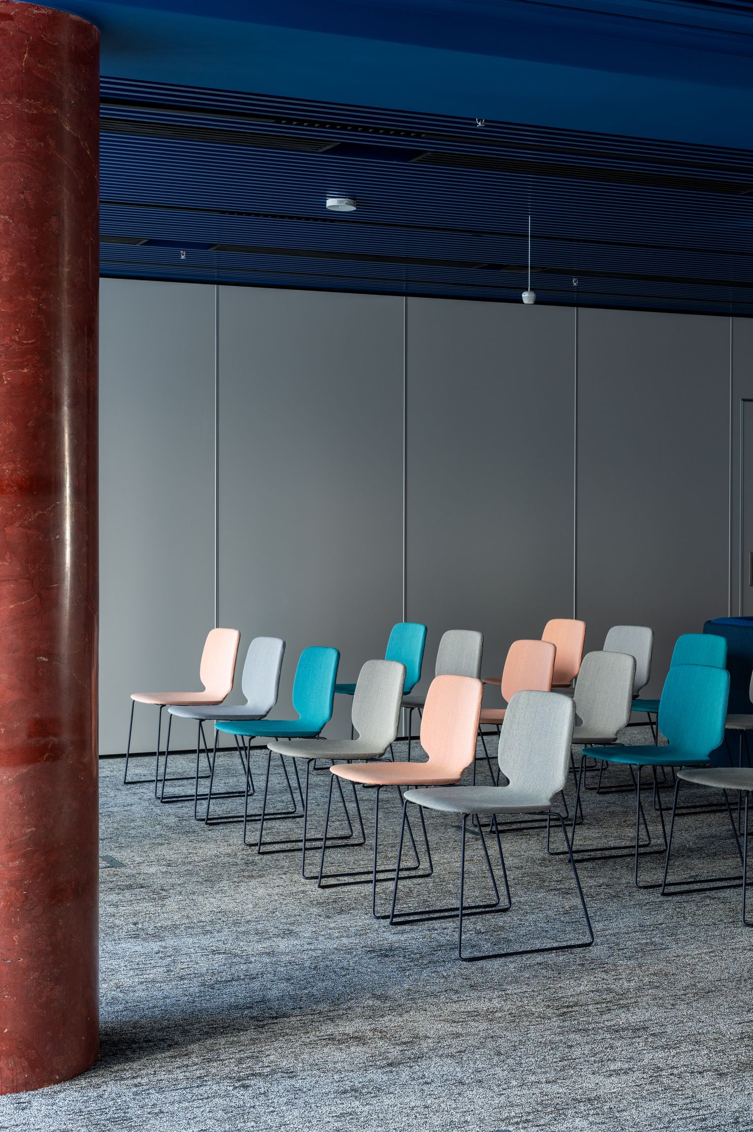 A belsőépítészeti tervezés során a meglévő épület értékeire fektettük a hangsúlyt úgy, hogy flexibilis, nyitott, színes tereket tervezzünk a szolgáltatónak.