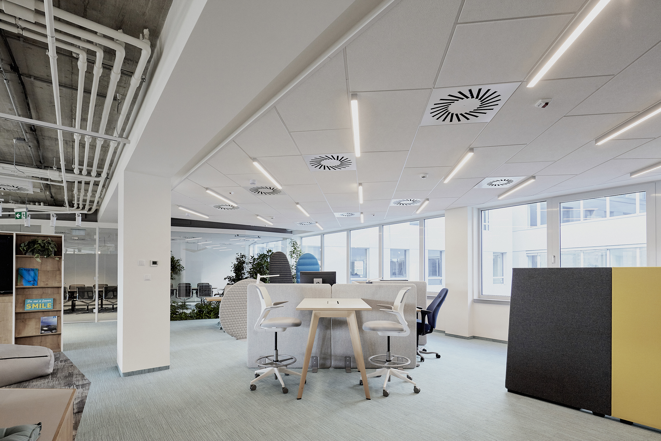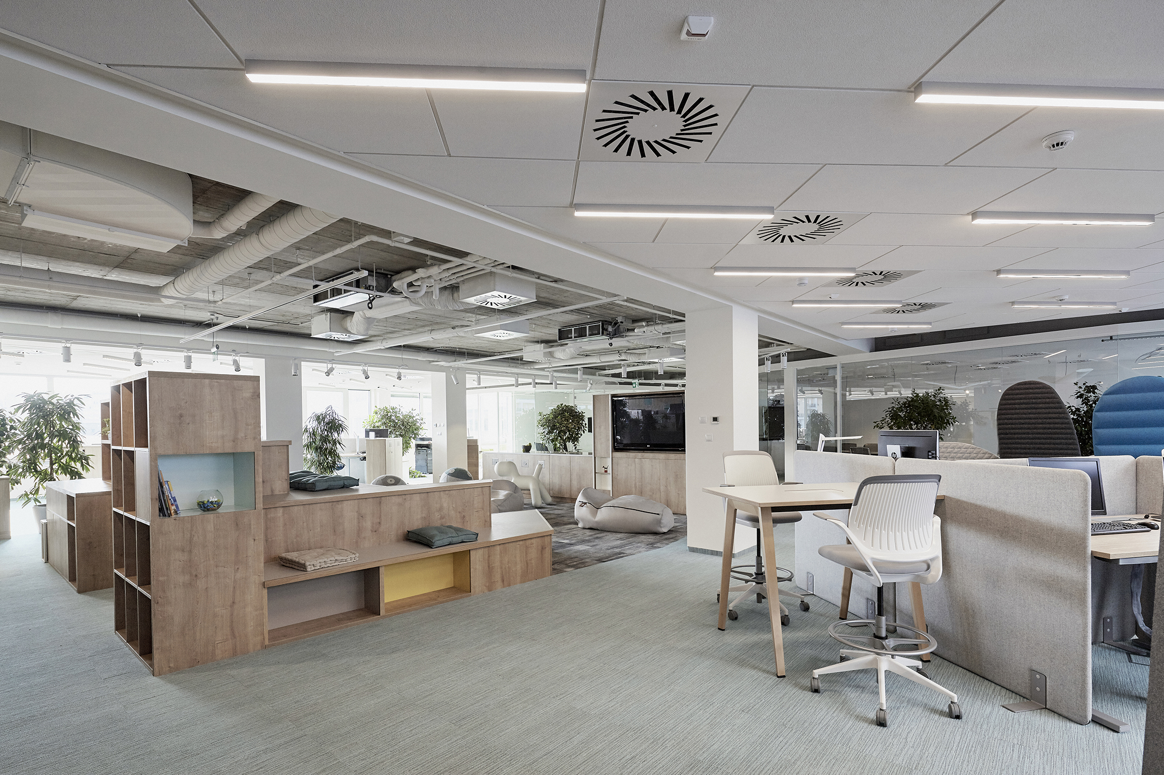 Skanska egy svéd ingatlanberuházó, aki több mint 25 éve jelen van a magyar piacon. A cég kiemelt figyelmet fordít minden egyes csapattagjára. A vállalati filozófiából következően minden kolléga szabad hozzáféréssel rendelkezik a munkafelülethez, mely szó szerint azzal jár, hogy a beérkező munkatárs a szabadon lévő munkaállomások közül bármelyiket kiválaszthatja, aszerint, hogy számára éppen melyik lenne a legalkalmasabb, a munka neme, vagy akár a saját hangulata alapján. A tér kialakítása ösztönzi a kreativitást, az együttdolgozást, a kommunikációt.