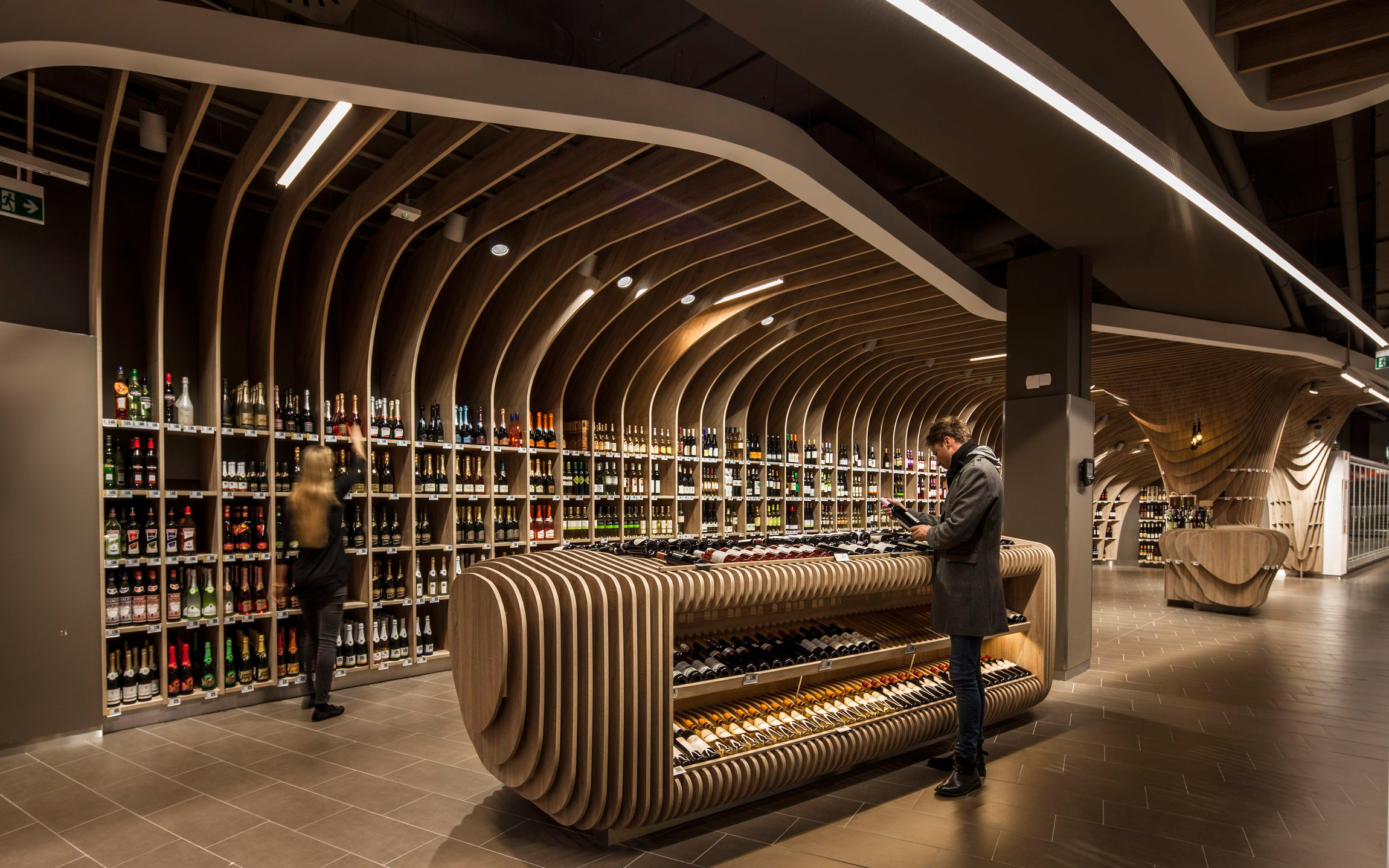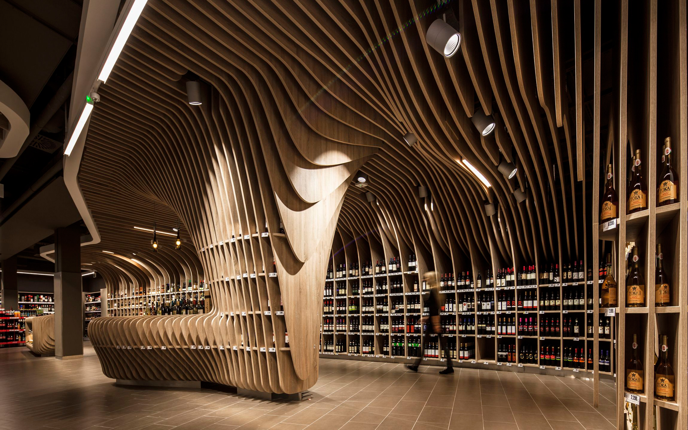 Dezeen https://www.dezeen.com/2013/12/24/spar-supermarket-displays-groceries-between-curved-wooden-ribs/