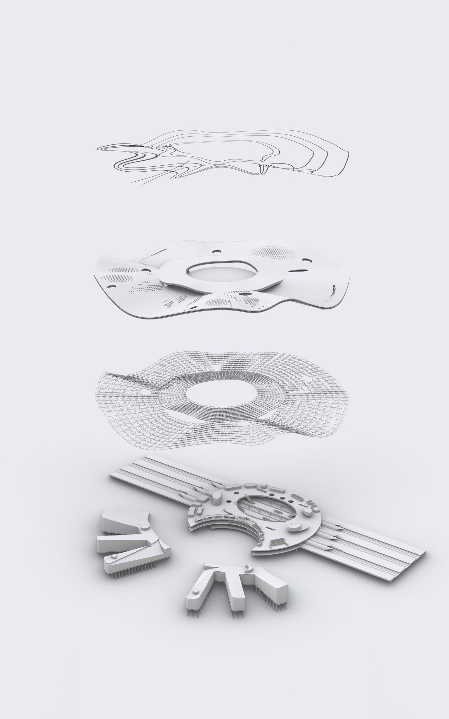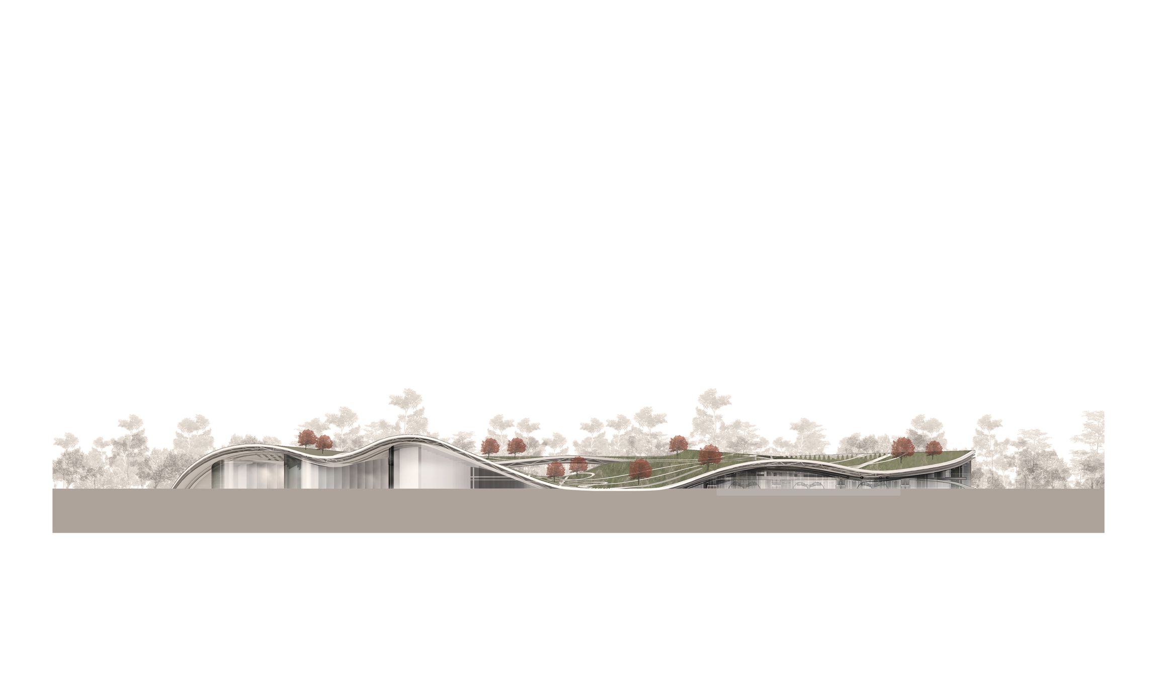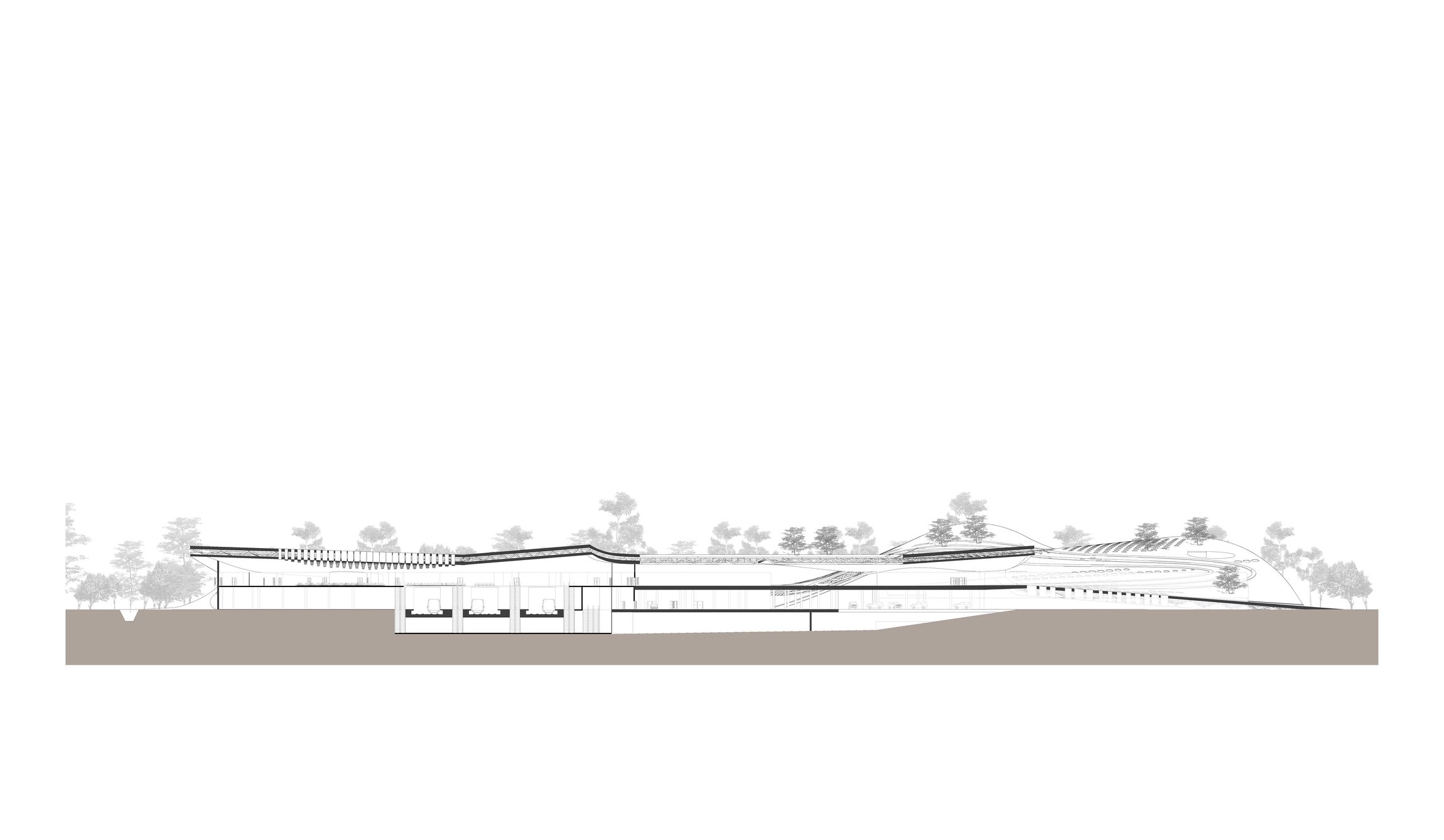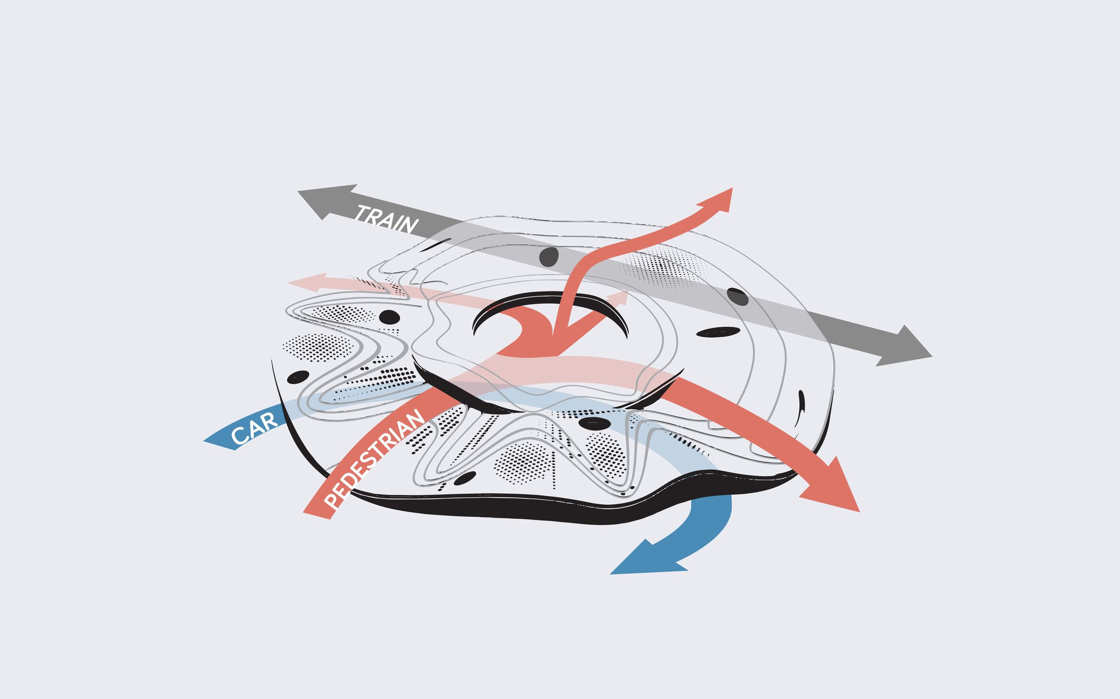 Tervünk fő kiinduló pontja egy olyan állomás megépítése, mely nem csak az úton levés élményére fókuszál, hanem az adott helyre, és az itt eltöltött időre is. Olyan térfüzér, mely befogadható, át- és megélhető. Természetesen a funkcióból eredendően egyértelmű, könnyen áttekinthető rendszert alkot, de kívánságunk szerint érzékeink közelségébe hozza a bejárt teret. Fenti célok megvalósításához a land arthoz3 fordultunk. Az állomás „épülete” a környező táj léptékében értelmezhető, természeti és városi formákra utaló, szerves alkotás.