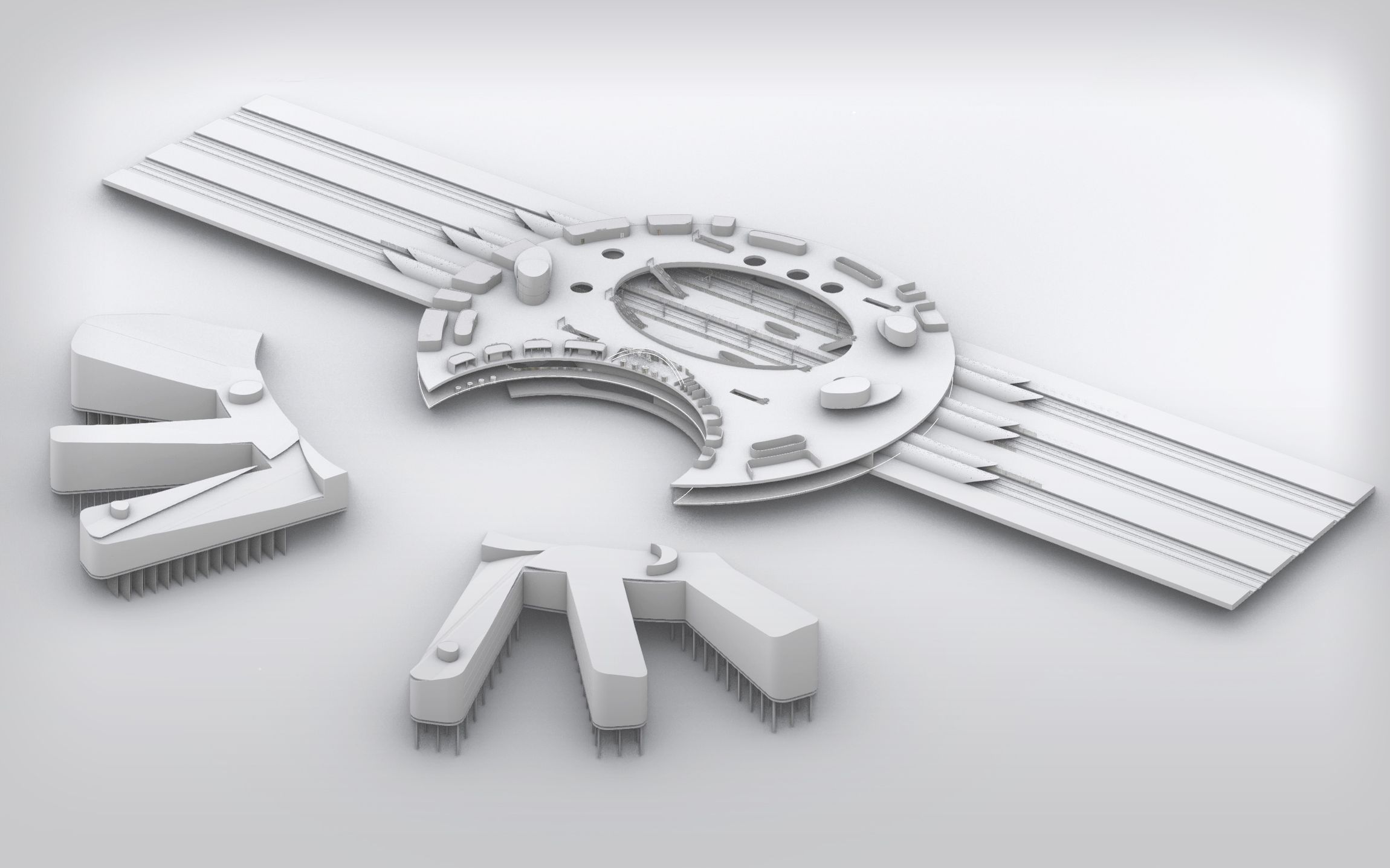 Xi’an már most is fontos vasúti csomópont, de a város nyugati területén újabb állomás lésítésébe vágnak bele, mely az épülő és tervezett vonalakat fogja kiszolgálni. Irodánk ezen beruházás ötletpályázatán2 szerepelt sikerrel. A tervezési program a kialakítandó utazási kapcsolatokon túl irodaházat, bevásárló központot, és szállodát is tartalmazott.